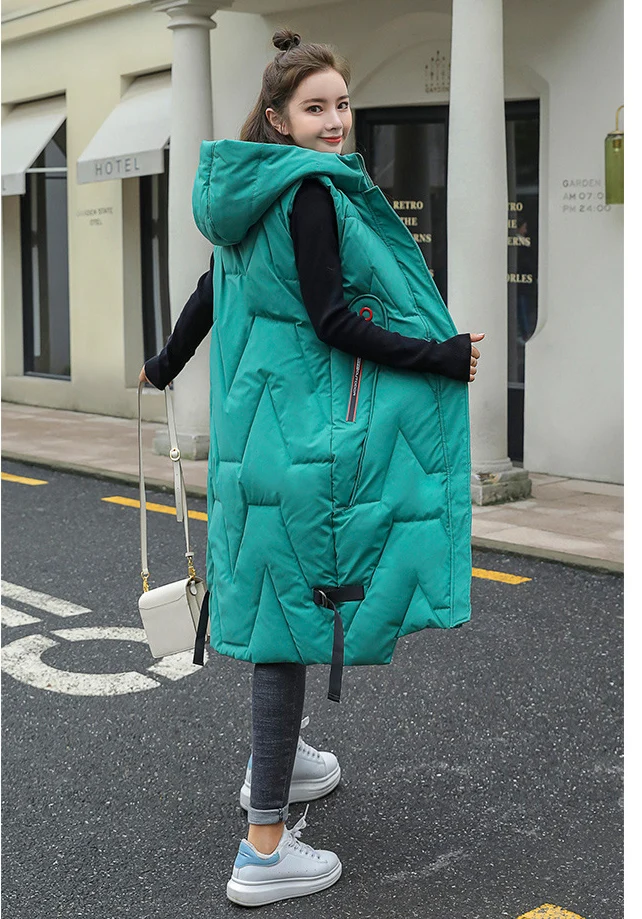 Женский Длинный жилет с подкладкой на пуху, осень и зима, новая мод...