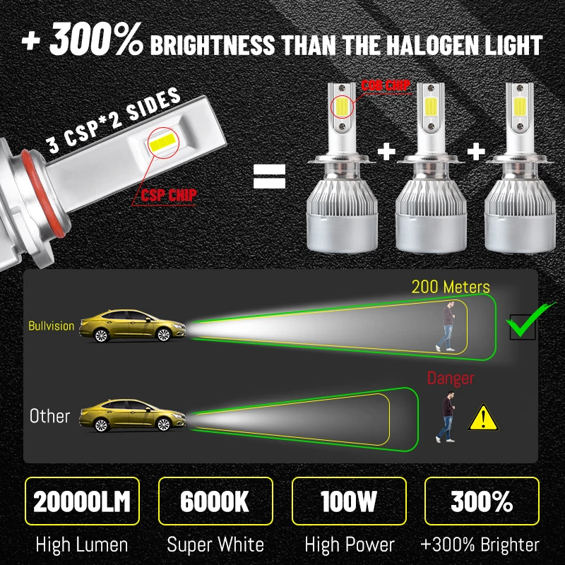 Светодиодные фары H7 20000LM H4 H11 H1 H8 H9 9005 9006 HB3 HB4 6000K 100W высокая мощность CSP чип безвентиляторный без вентилятора медные полоски для объектива