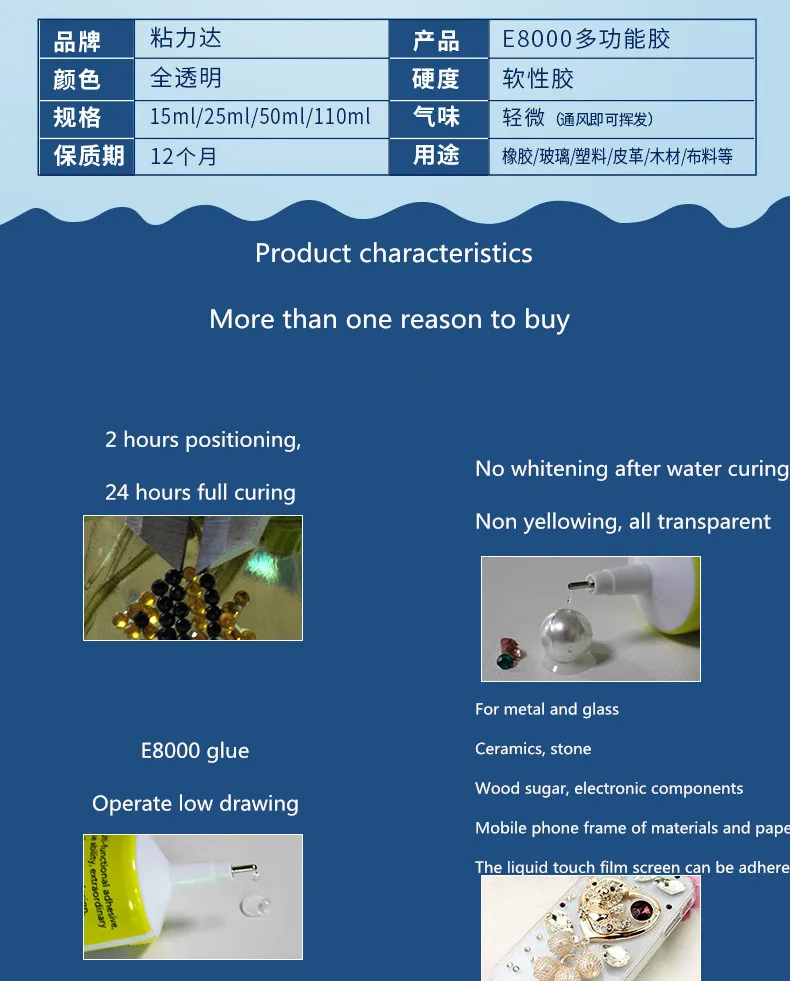 50 мл E8000 жидкий клей супер сильный многоцелевой клей ювелирные изделия Кристальные Стразы Сделай Сам фиксация экрана телефона стекло гель для ногтей