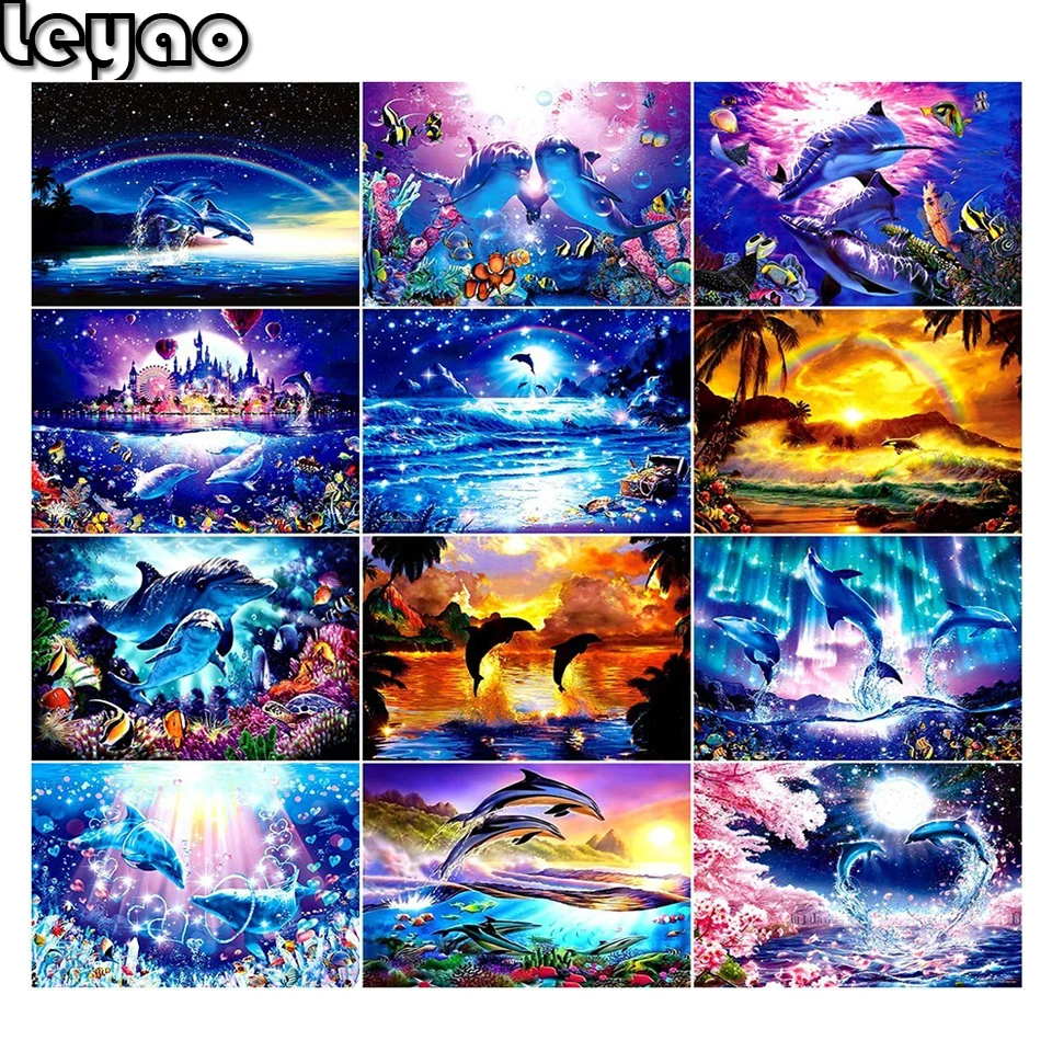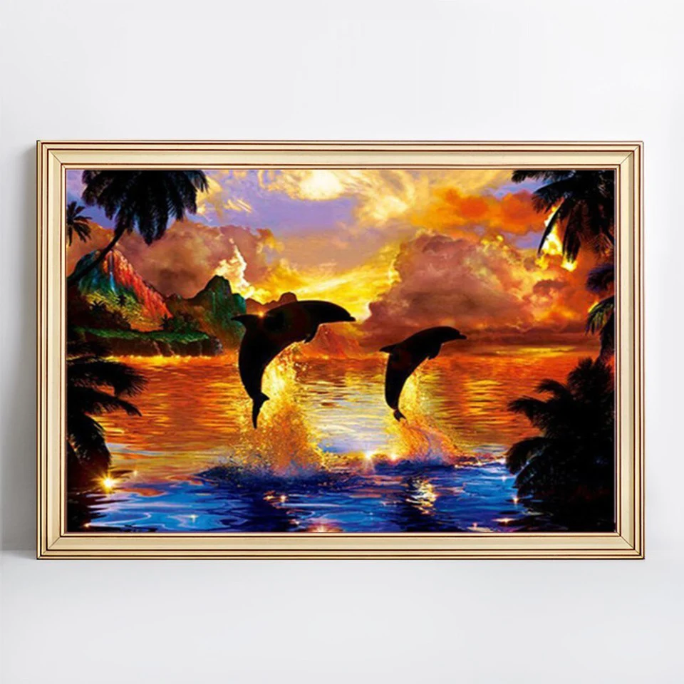 Дельфин алмазная живопись океан пейзаж 5D DIY Бриллиантовая мозаика пейзаж полный квадрат Алмазная Вышивка ремесла Набор декоративных