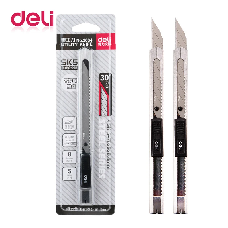 Deli 1 Uds cuchillo de acero de alta calidad cuchillo de utildad duradero para tallar papel tapiz de cajas abiertas cortador материал Escolar papeleria