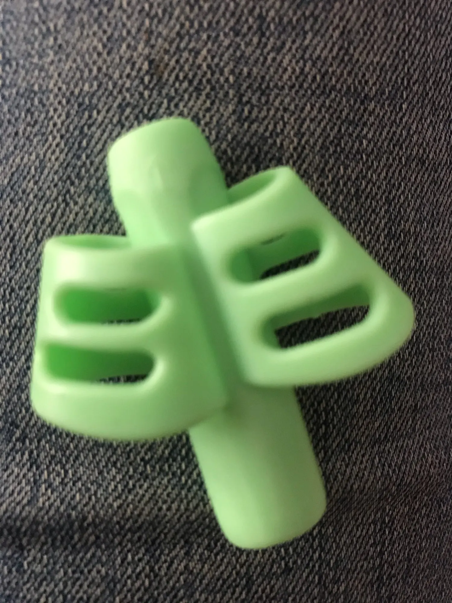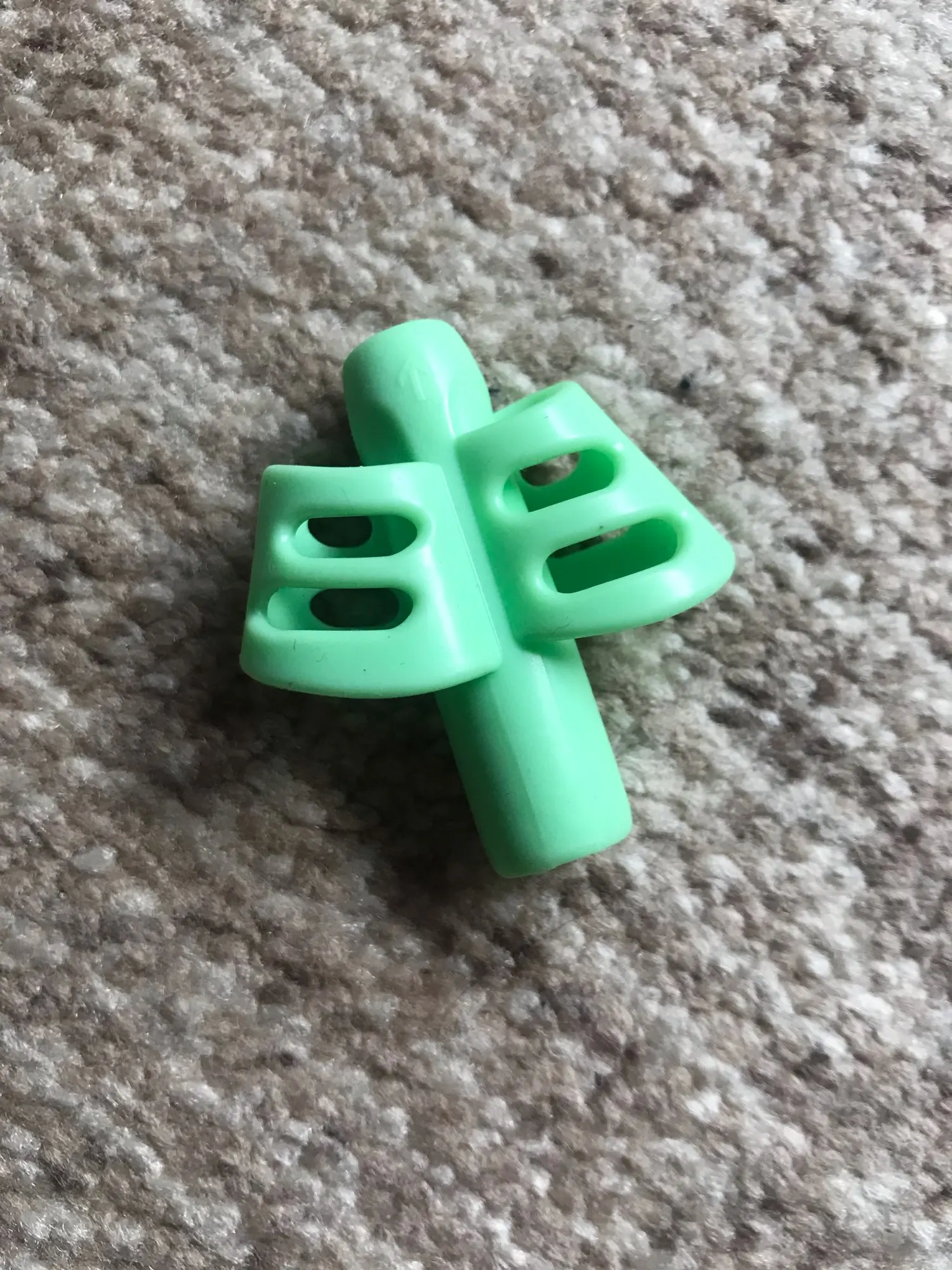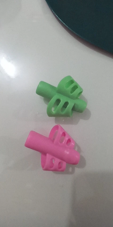хорошие тренажёры, особенно, если ребенок пытается свести близко указательный и большой пальцы. но к нему тоже надо привыкать, плюс для крупных пальцев отверстия могут быть малы. карандаш/ручка входят обычных размеров, не утолщенные.