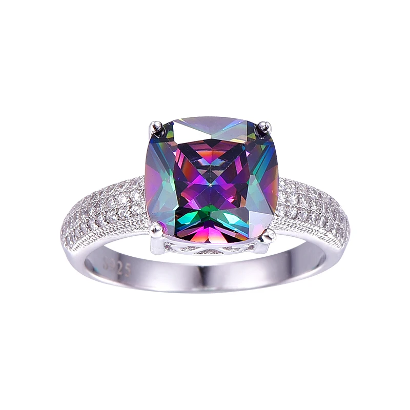JQUEEN драгоценный камень 7.3ct Подлинная Радуга Огонь Мистик Топаз Кольцо чистое Твердое Серебро 925 пробы обручальные кольца для женщин