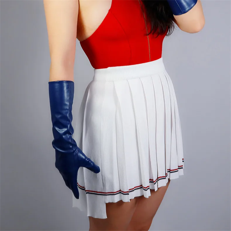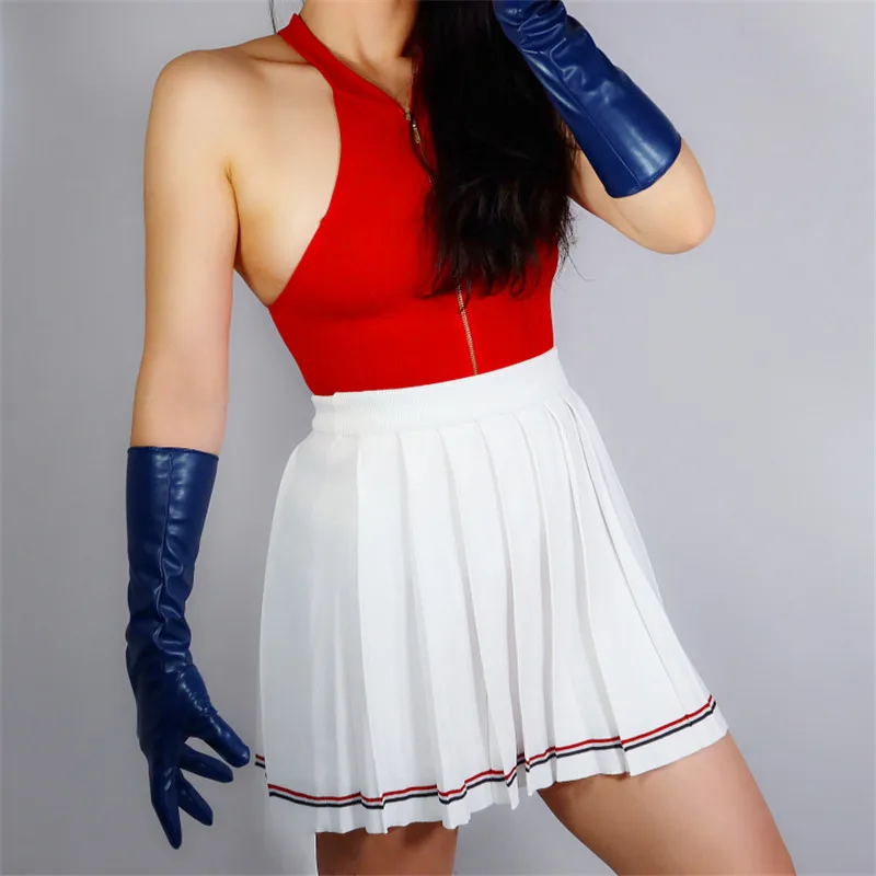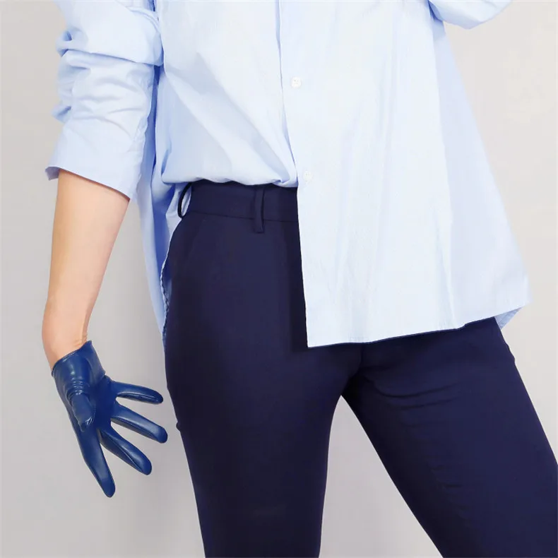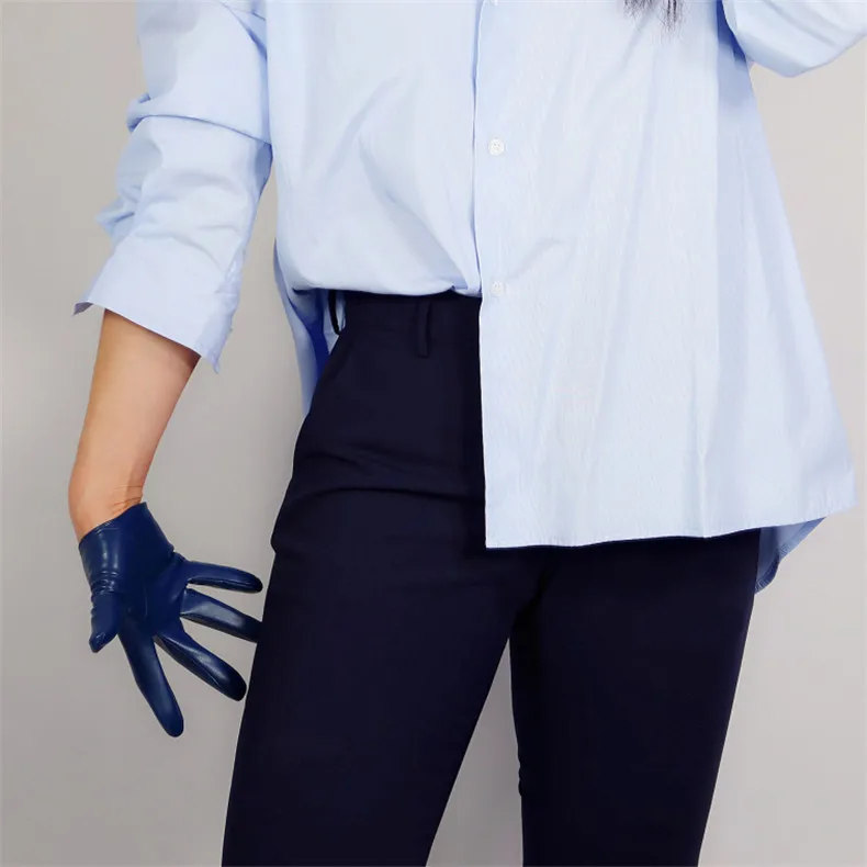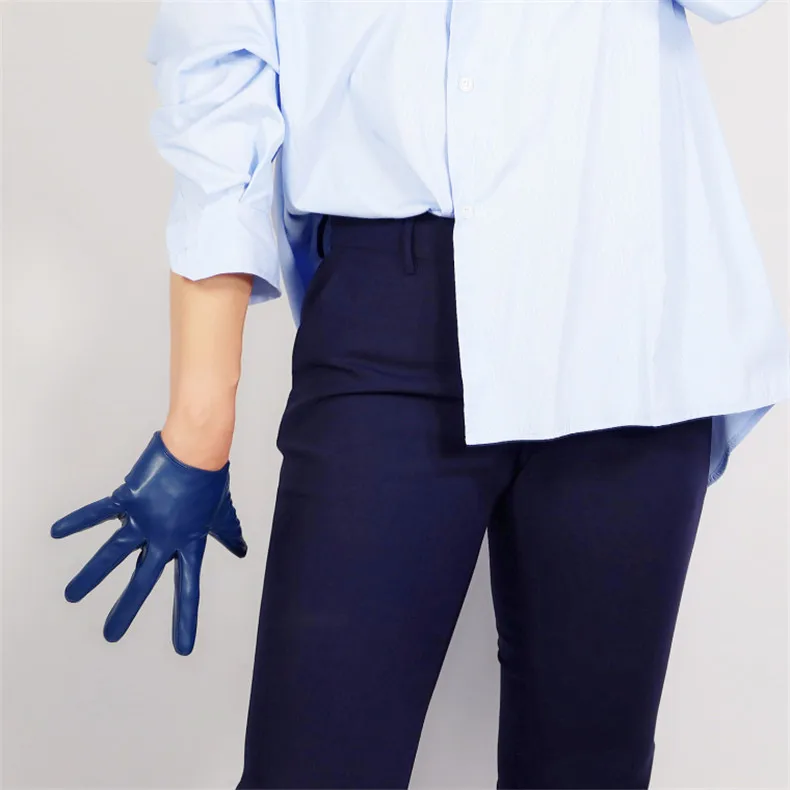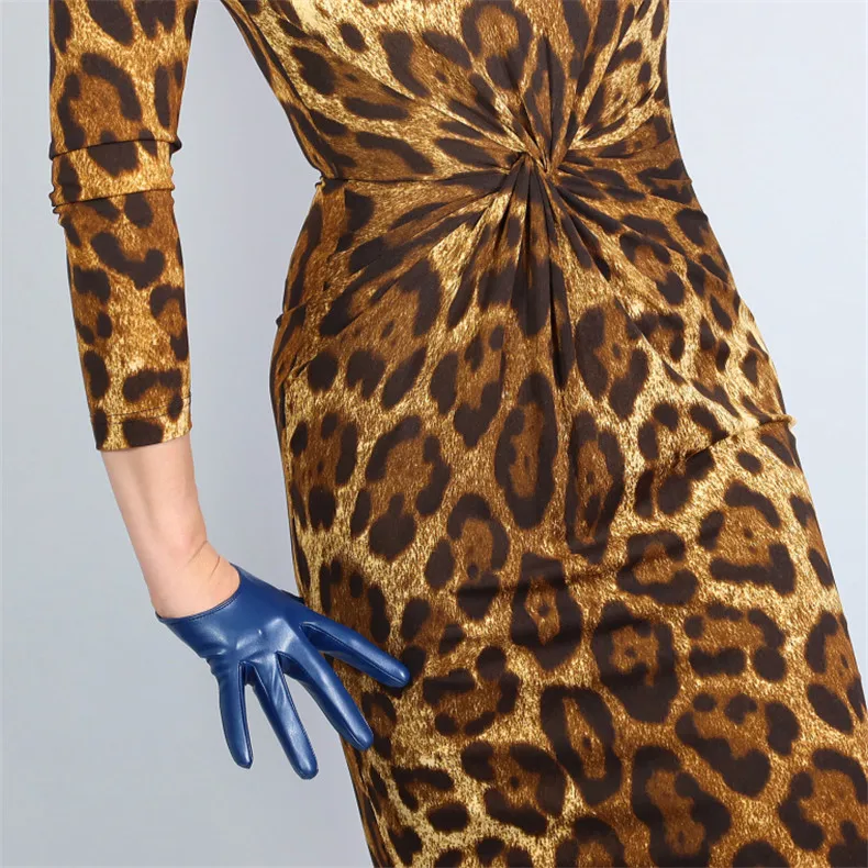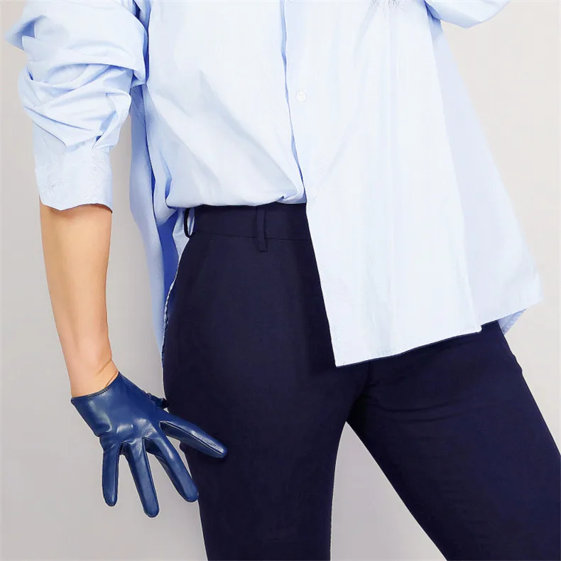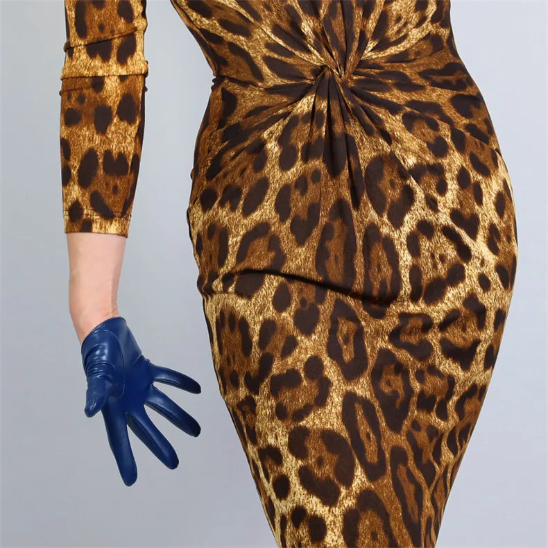 Удлиненные Модные женские перчатки из искусственной кожи, овчины, искусственной кожи, 28 дюймов, 70 см, Вечерние кожаные перчатки для женщин, синие, темно-синие