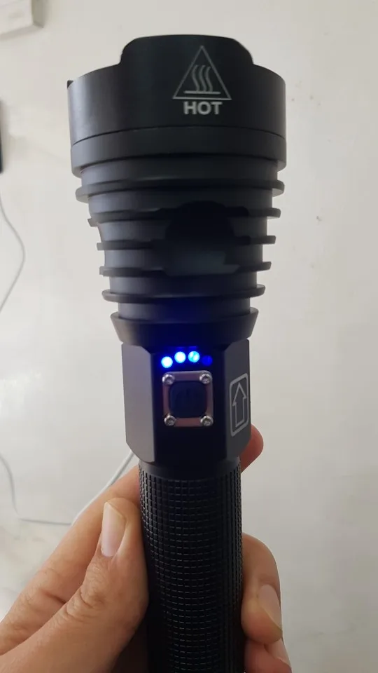 ★Светодиодный светильник: XHP50★5 режимов: 100% освещение-70% освещение-50% освещение-вспышка SOS★Материал: алюминиевый сплав★Переключатель: нажмите переключатель★Режим зарядки: зарядка через USB★Расстояние освещения: выше 300 метров (1000 футов)★Светодиодный срок службы: более 100000 часов★Аккумулятор: 1*18650/1*26650(Не входит в комплект)