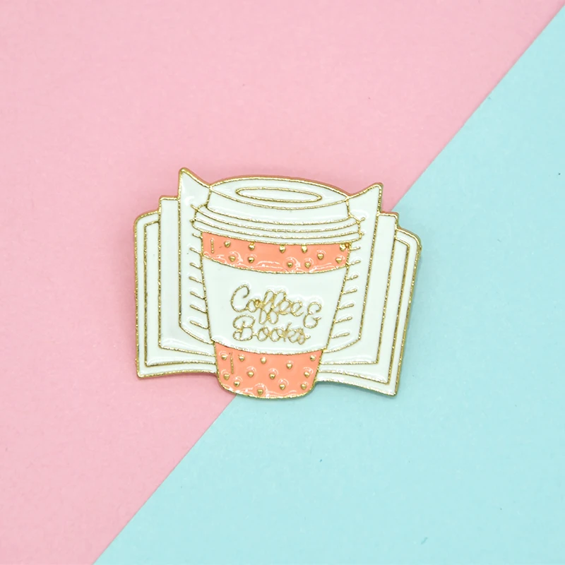 Я люблю кофе значок творческий мультфильм кошка книги астронавт кофе эмаль брошь модная Личность лацкан рюкзак ювелирные изделия подарок
