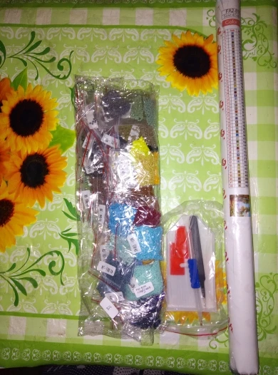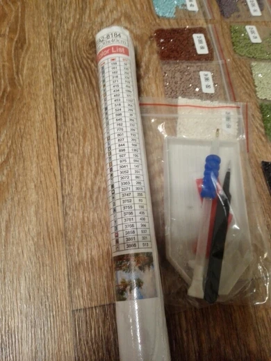 Холст намотан на валик, запакован в целофан. Идеально ровный. Инструмент очень хороший. 35 цветов. Черного нет совсем. Больше всего цвета 3320 - это темно коричневый. Очень много разных голубых цветов. Картина не должна получиться темной. Стразы хорошего качества. заказом довольна.