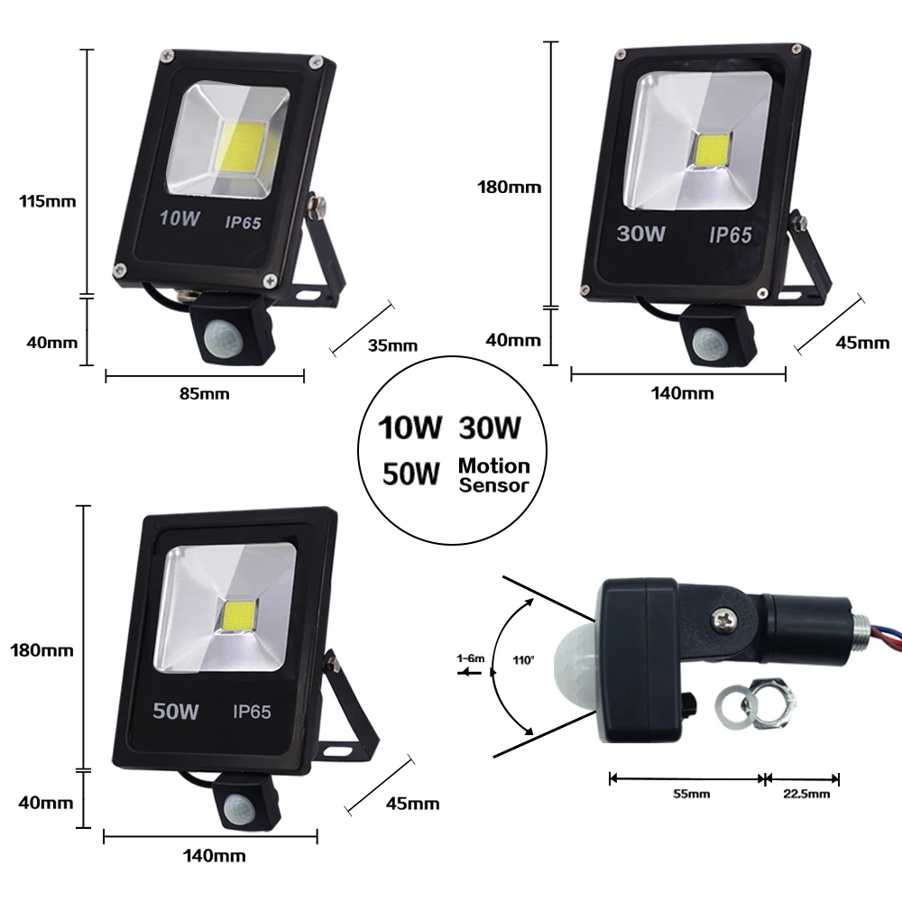 220 В светодиодный прожексветильник 10 Вт 30 Вт 50 Вт отражатель прожсветильник Ip65 сасветильник прожектор с пассивным ИК датчиком движения фонасветильник