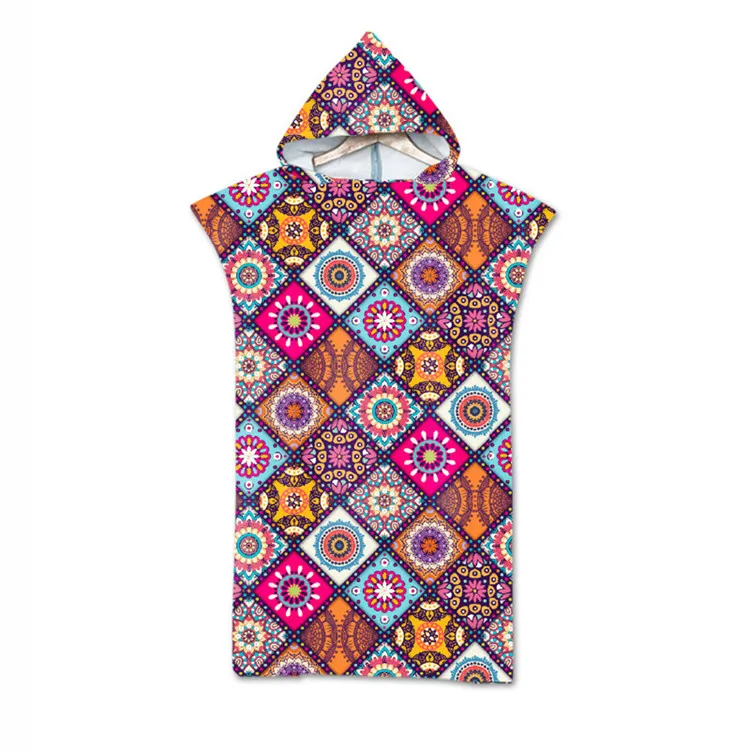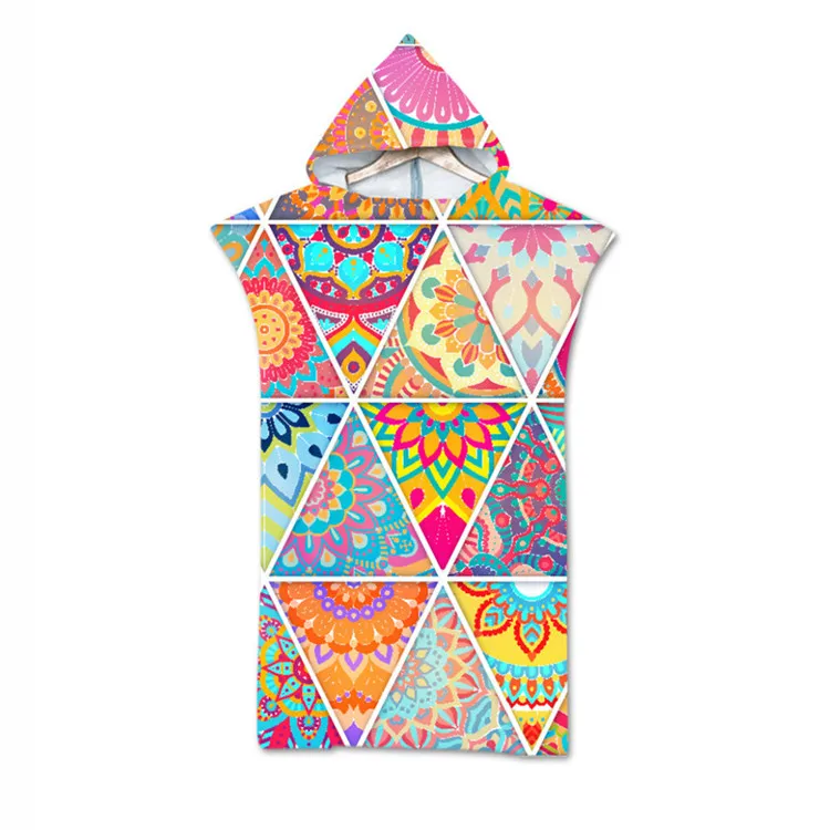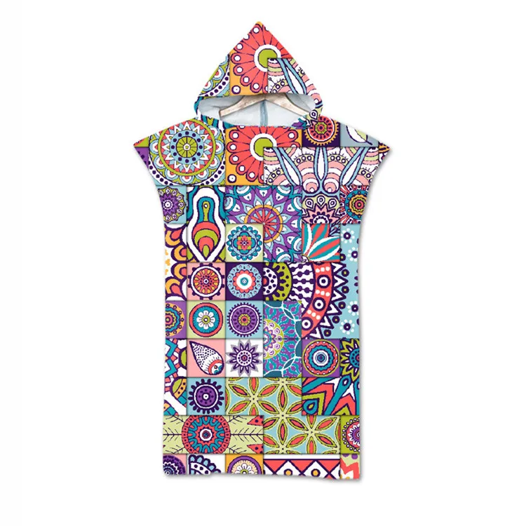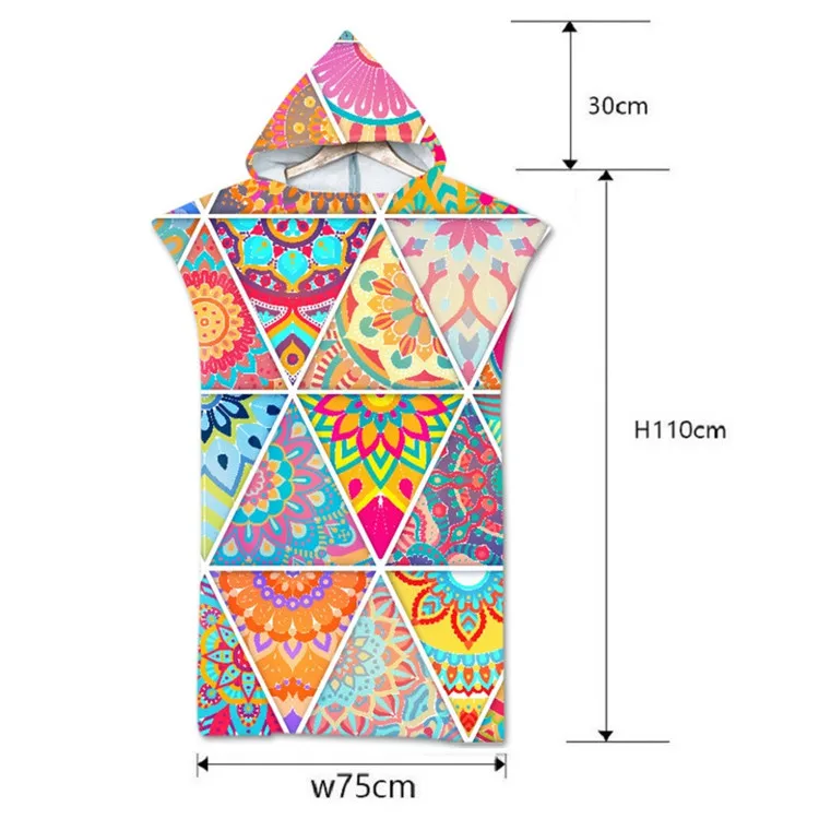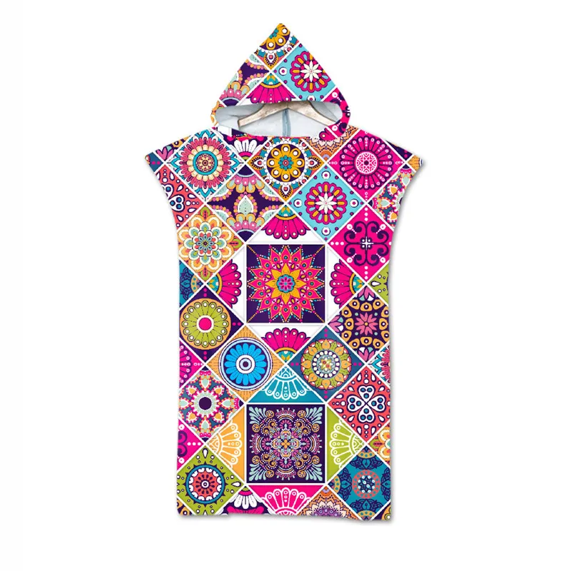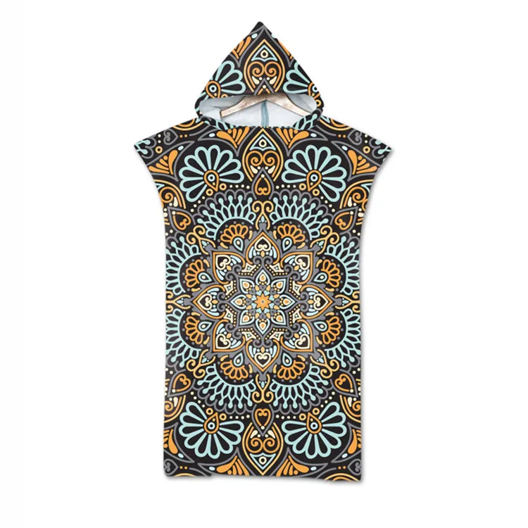 Пляжное полотенце с капюшоном из микрофибры для взрослых, пончо для плавания и серфинга в бассейне, с мандалой, Быстросохнущий s-образный купальник, сменный Халат