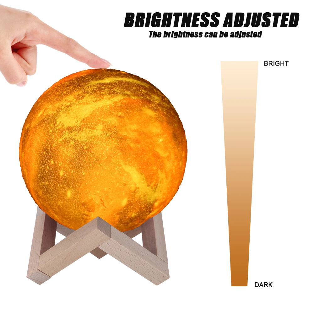 Лунная лампа изготовлена из материала PLA и безопасна и экологична. Можете быть уверены, что ребенок будет пользоваться.