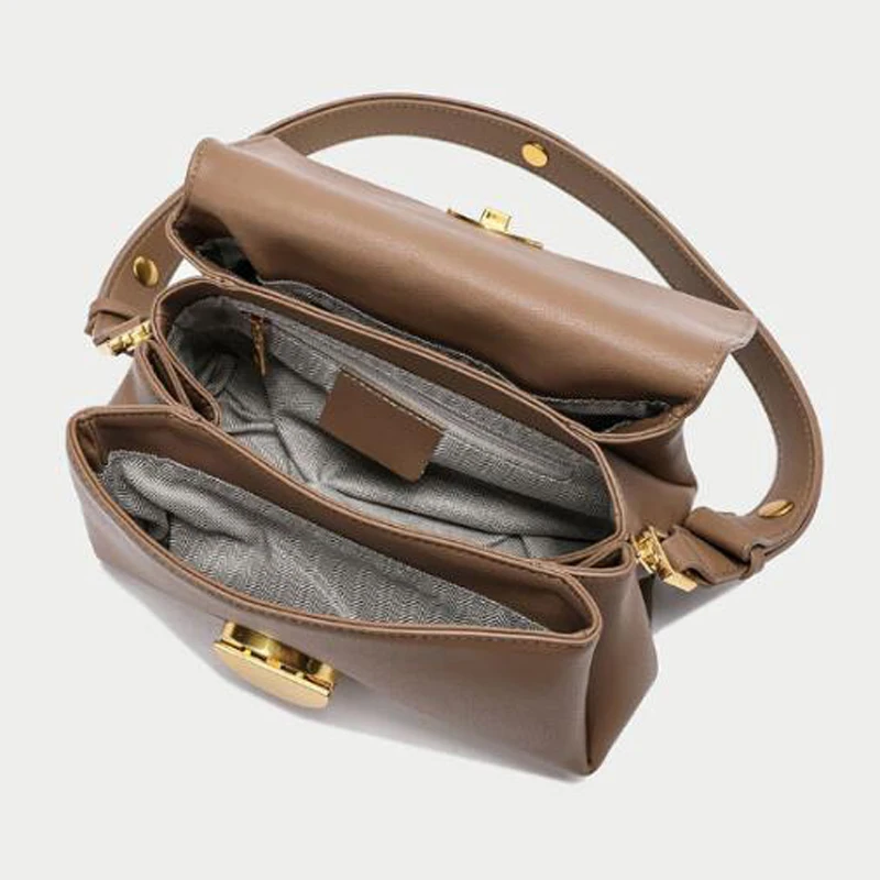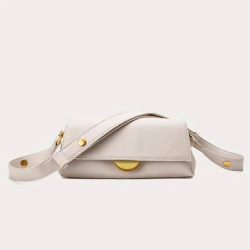 Женская кожаная сумка-Кроссбоди, с несколькими карманами, бежевого цвета