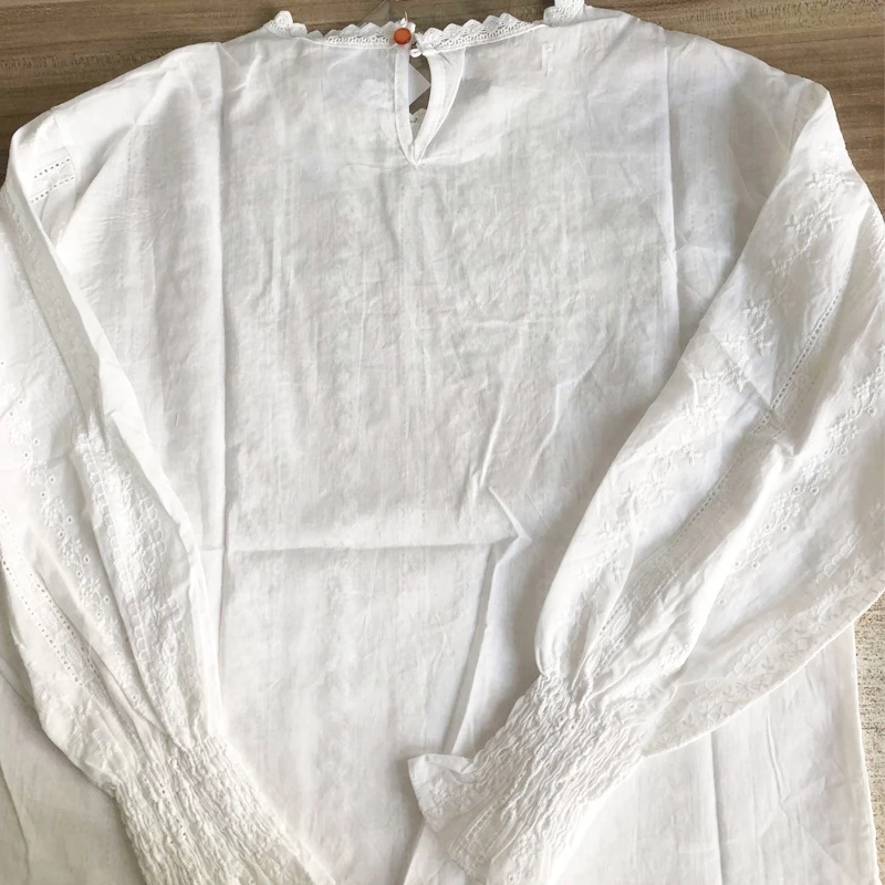 СообщениеУважаемый покупатель, это то, что вам понравится. Выглядит как милое ощущение феи, белое однотонное кружево и сам хлопковый Льняной материал более элегантны,Нежный и мягкий с первого взгляда. Это волнующий вид. Вышивка и дизайн рукавов-фонариков делают блузку более нежной, повседневной и красивой!О модели как о образе,Качество как в описании, высокий уровень, размер в размер. Рекомендуем это на осень,Также подходит для офисной леди или повседневной жизни,ПриятногоДень!Спасибо.Демонстрация модели