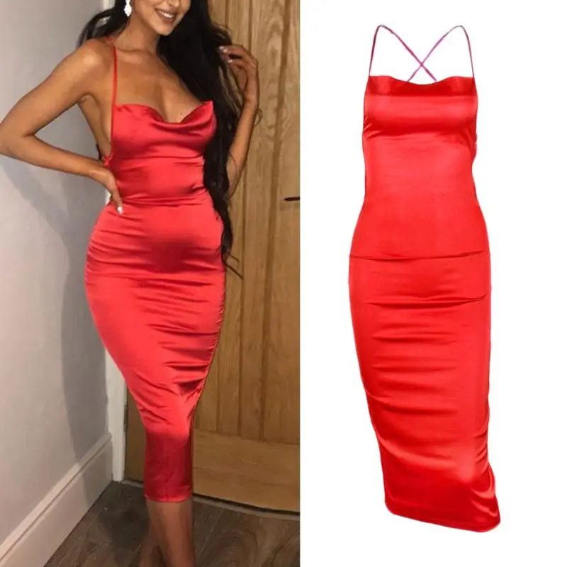 Сексуальное женское платье на бретельках атласная шелковая обувь, С...