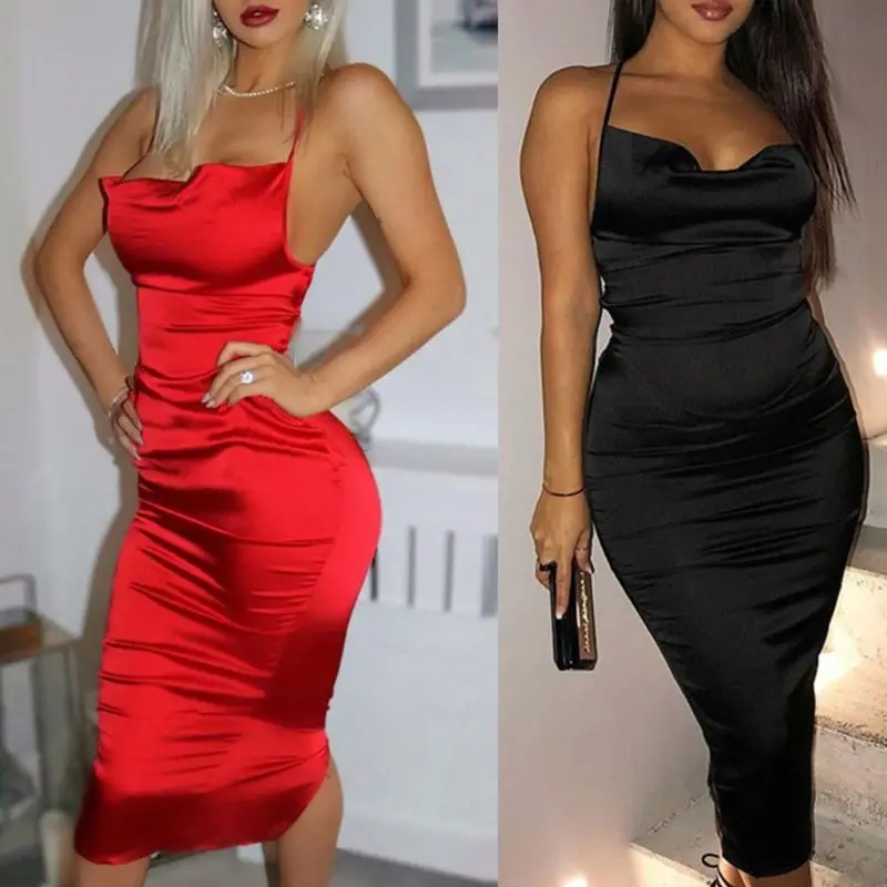 Женское атласное платье-миди, элегантное однотонное соблазнительное...