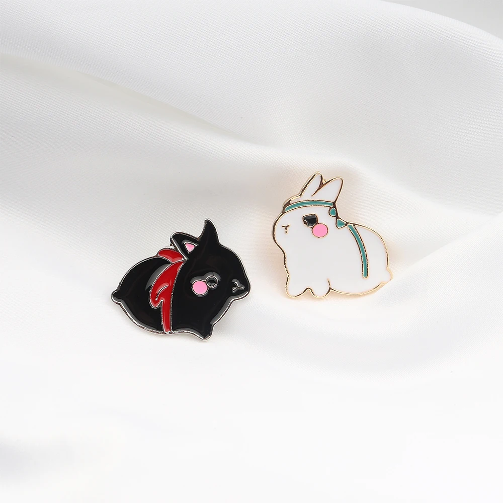 Милый МО дао ЗУ Ши, 1 шт., черный, белый кролик, эмалированная брош...