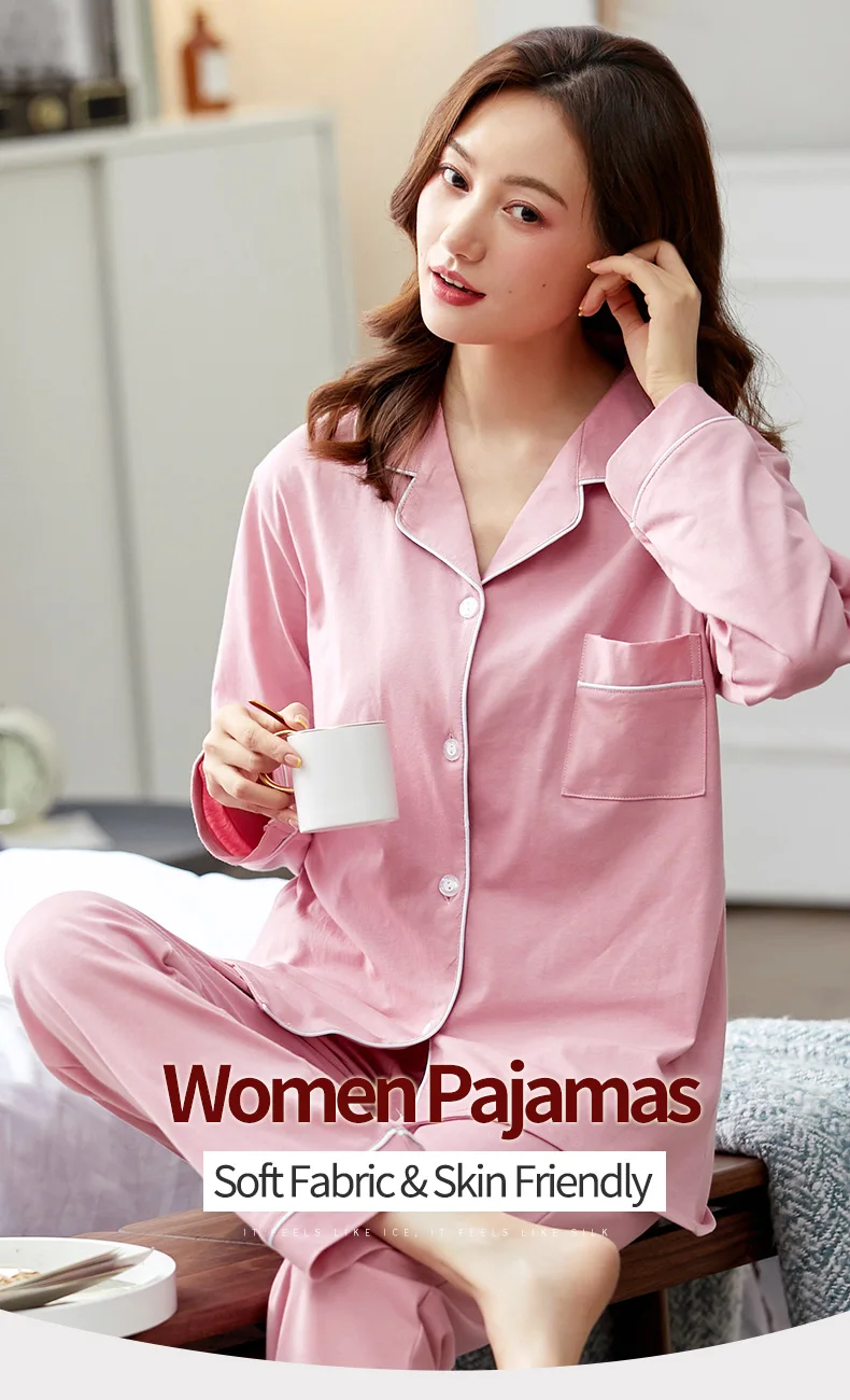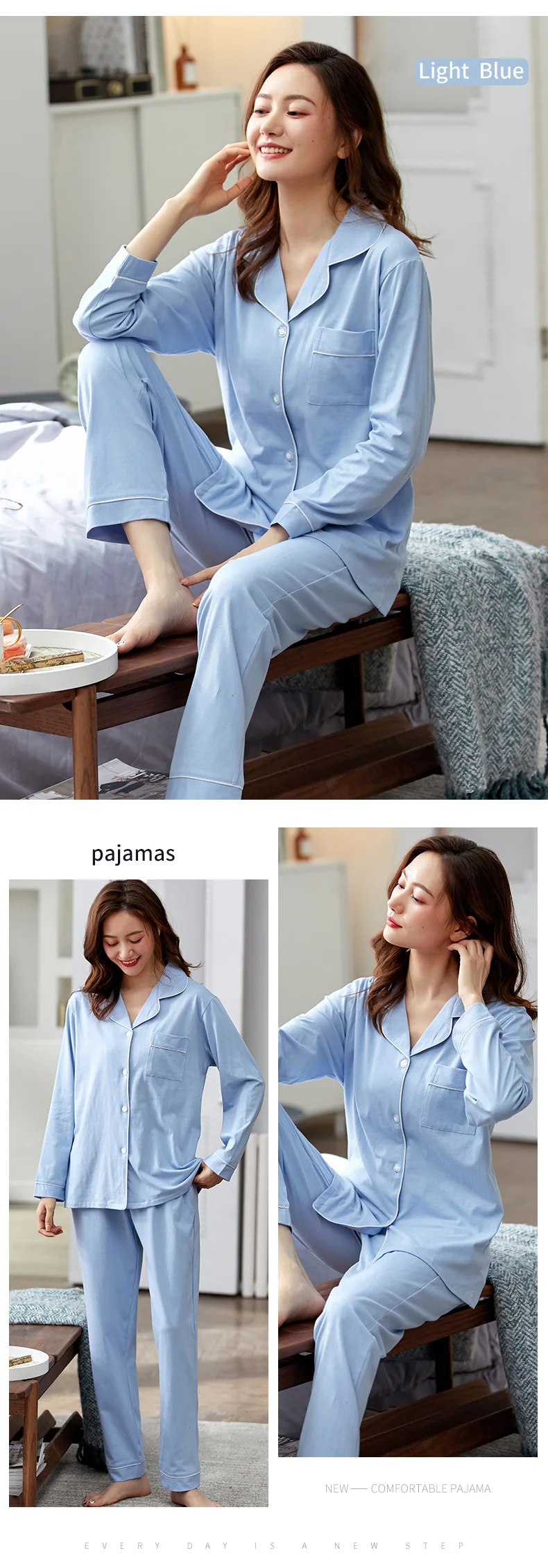 Пижама женская из 100% хлопка, с длинным рукавом, на пуговицах