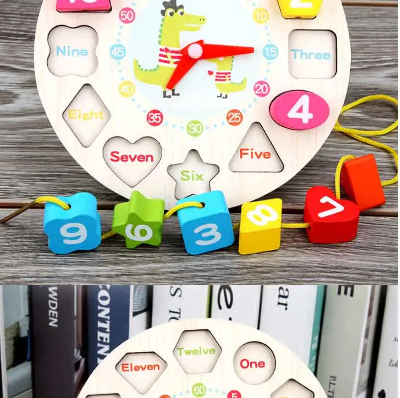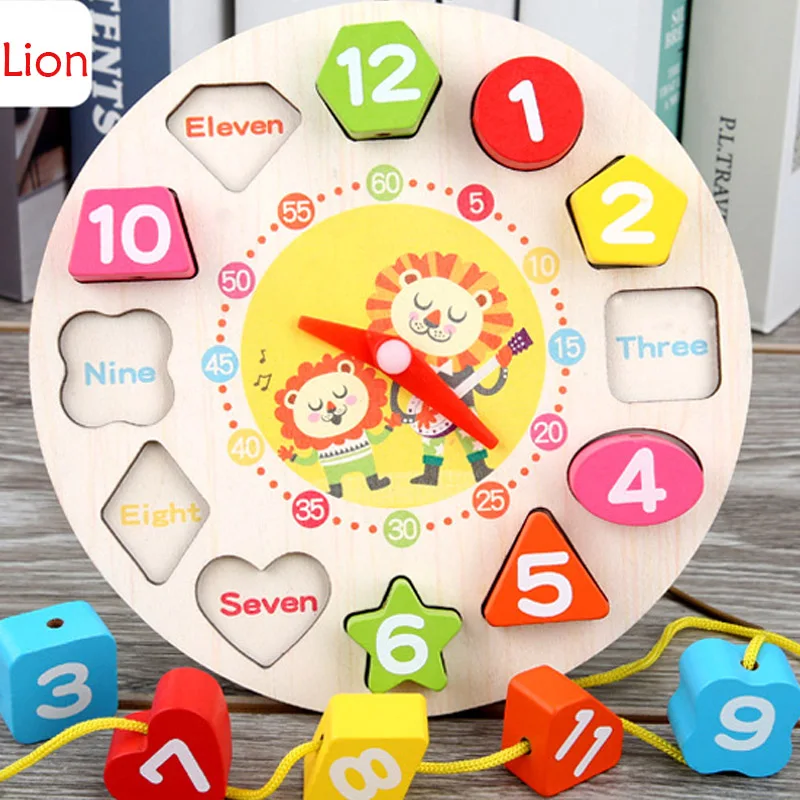 Монтессори мультфильм животных Образовательные деревянные бисером Геометрия цифровые часы Пазлы гаджеты соответствующие часы игрушки для детей