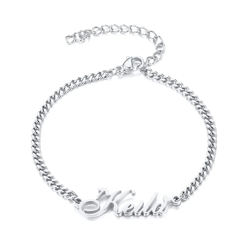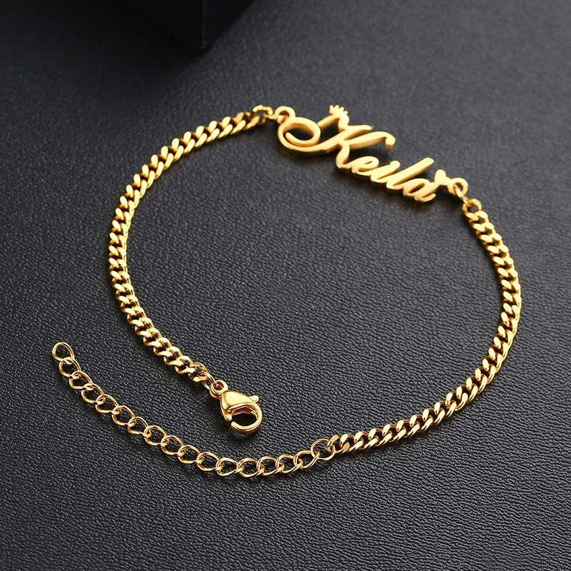 Браслет на заказ из нержавеющей стали, Подвески ручной работы, кубинская цепочка, персонализированная Корона, именная табличка, женский браслет, любой шрифт с гравировкой