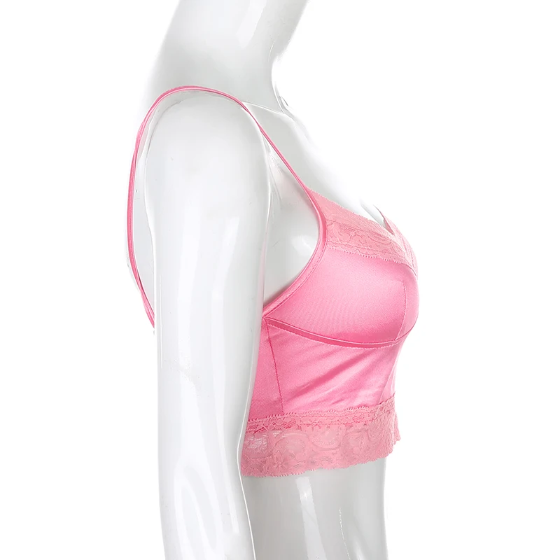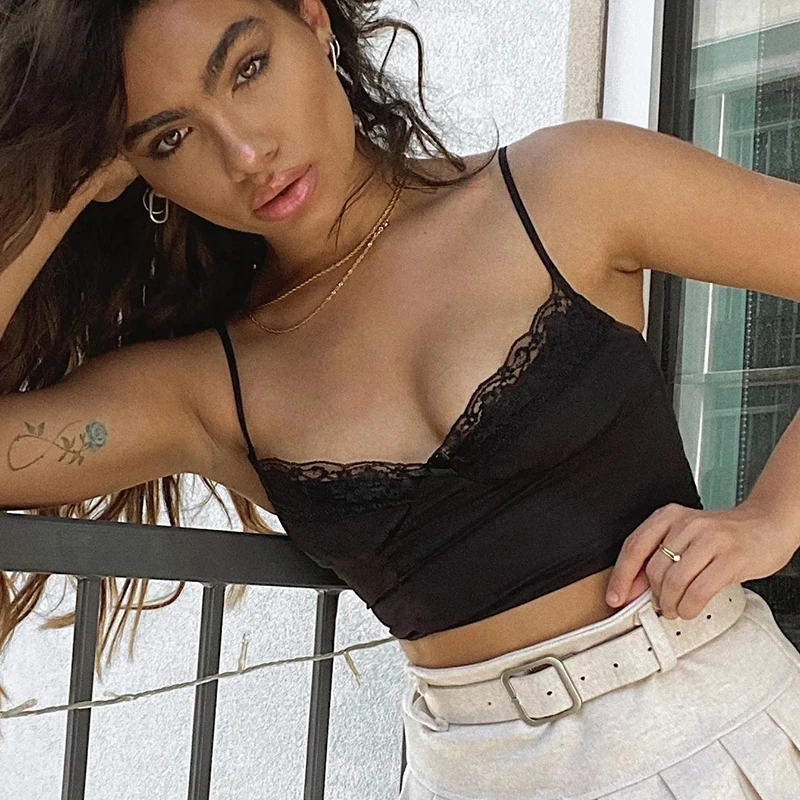 Топ женский атласный Шелковый, кружевной, без рукавов, с V-образным вырезом