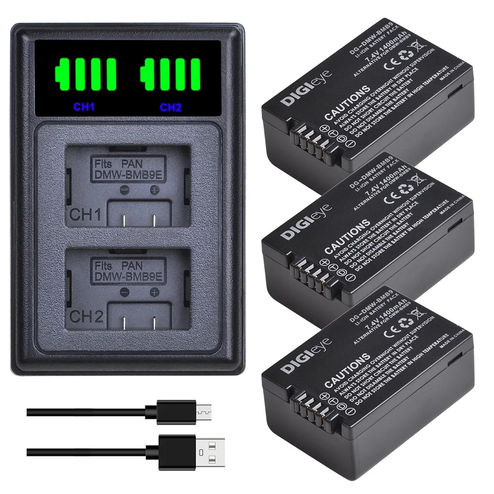 Аккумулятор 1400 мАч DMW-BMB9 BMB9E BMB9PP + двойное зарядное устройство со светодиодной подсветкой для Panasonic Lumix DC-FZ80 FZ40K FZ45K FZ47K Z48K FZ60 FZ70 FZ100