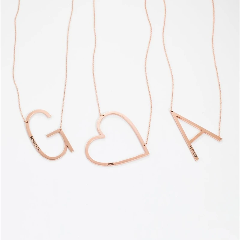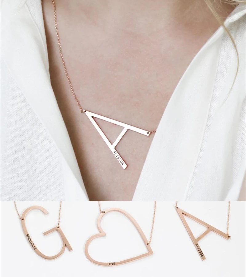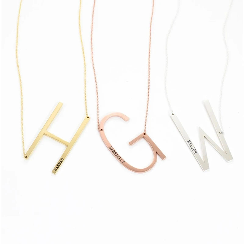 Большая подвеска с выгравированным именем, именем на заказ, ожерелье из нержавеющей стали с персонализированной табличкой, чокер, ожерелье, женская мода