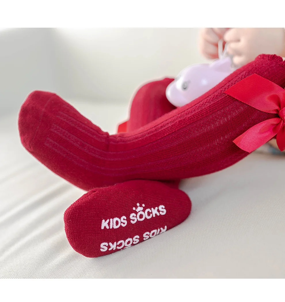 Гольфы для девочек, хлопковые, Нескользящие, с бантом, на возраст 0...