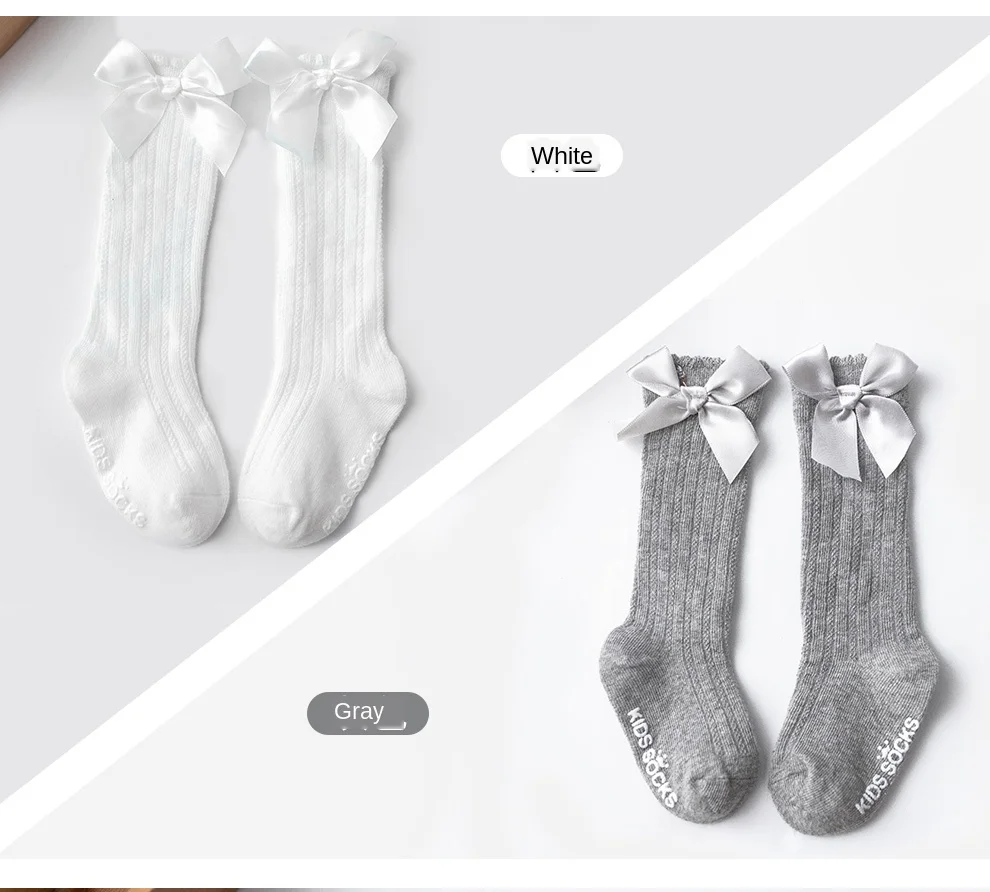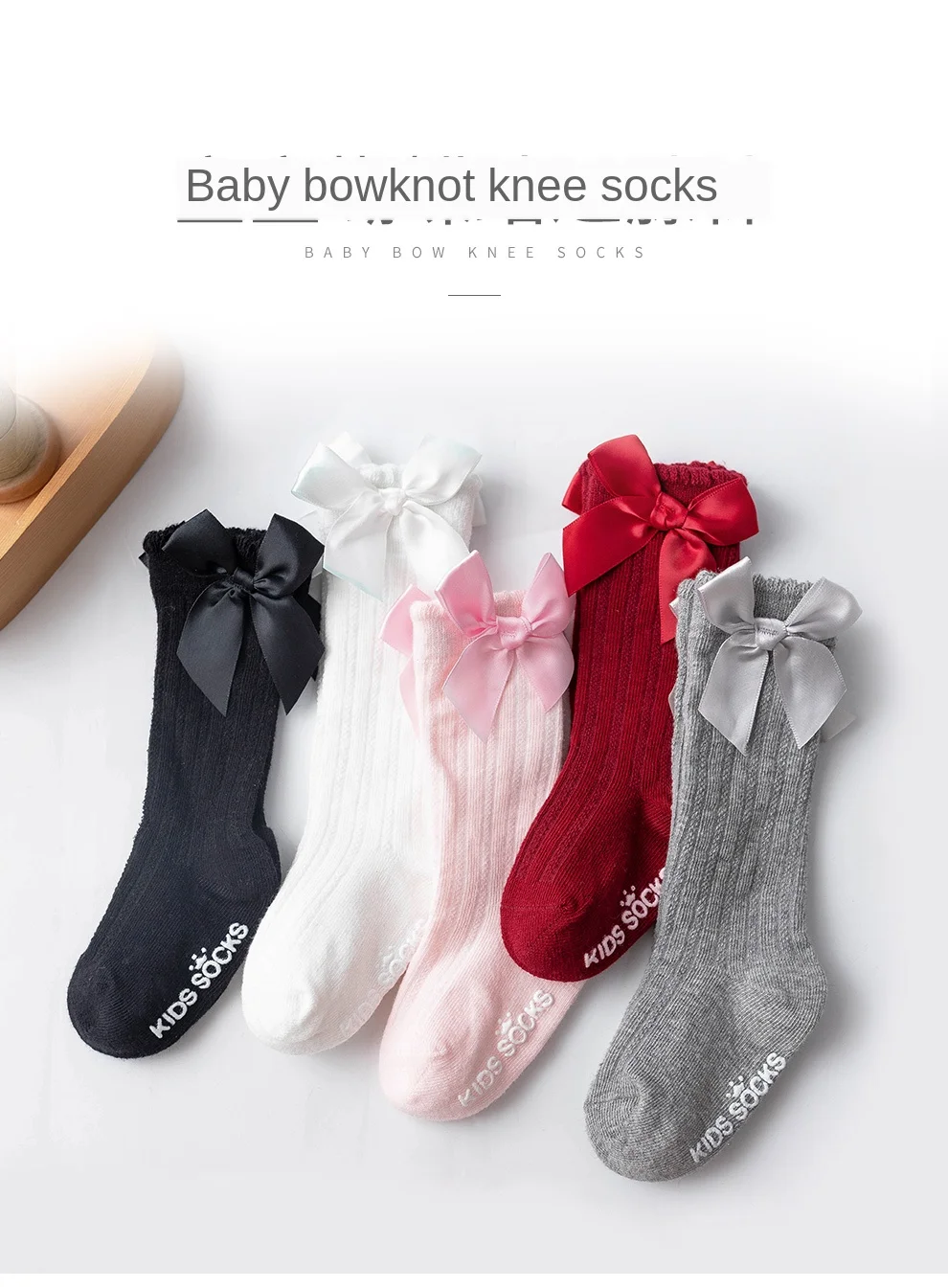 Носки до колена для девочек с большим бантом, мягкие детские носки,...