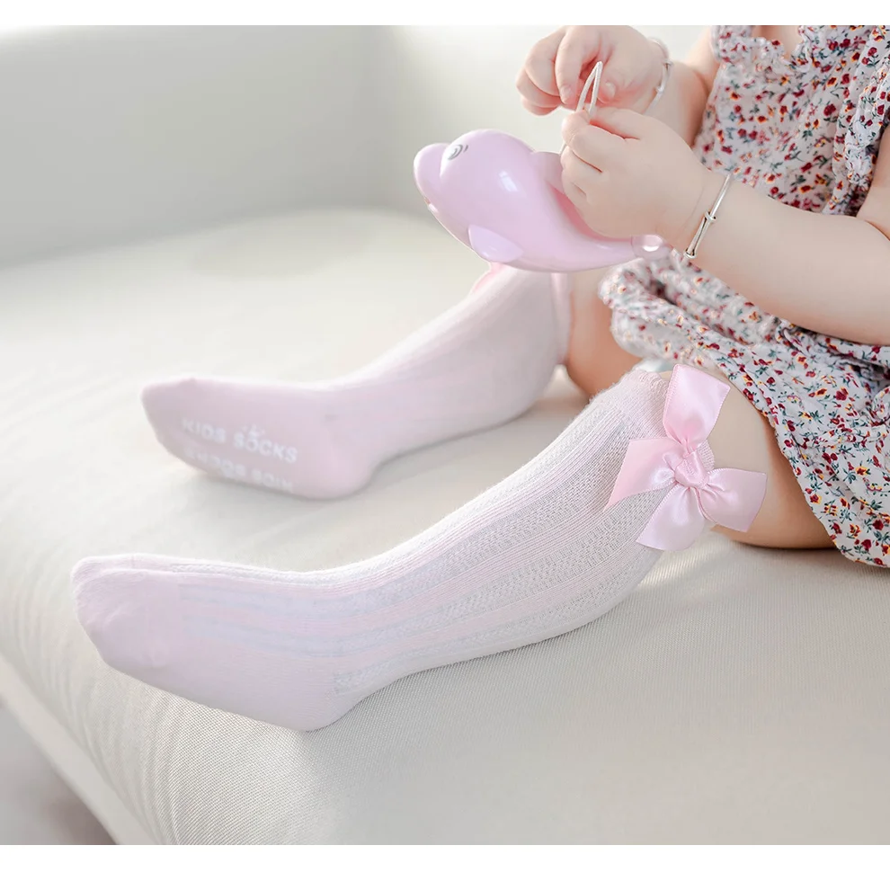 Детские носки для маленьких девочек с большим бантом до колена длин...