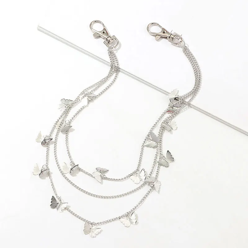 Цепочка на талию для мужчин и женщин, Ювелирное Украшение многослойная цепочка на талию для брюк в стиле хип-хоп, уличная Цепочка-бабочка в стиле панк, пояс-цепочка на талию