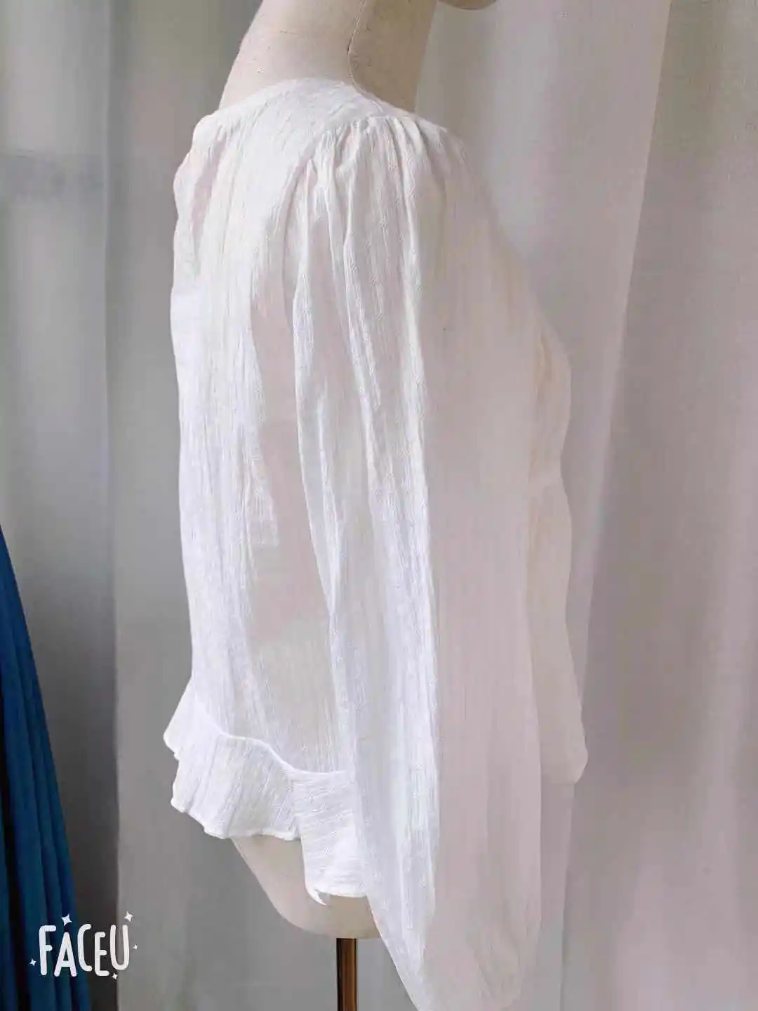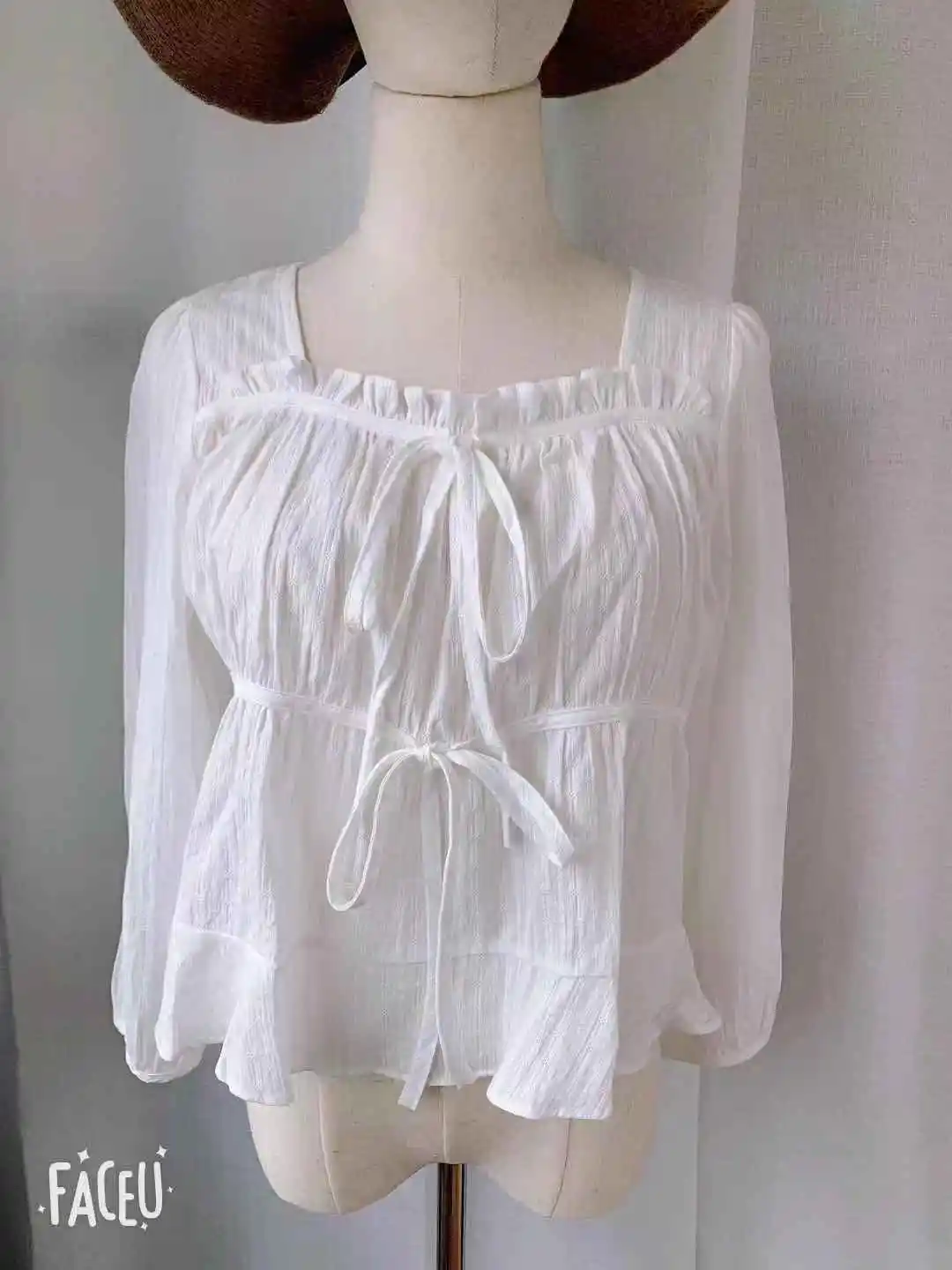 Блузка женская кружевная с вышивкой, из льна и хлопка, с длинным рукавом