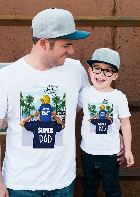 Футболка с принтом Super dadfamily, для Отца и Сынадочери, Забавные...