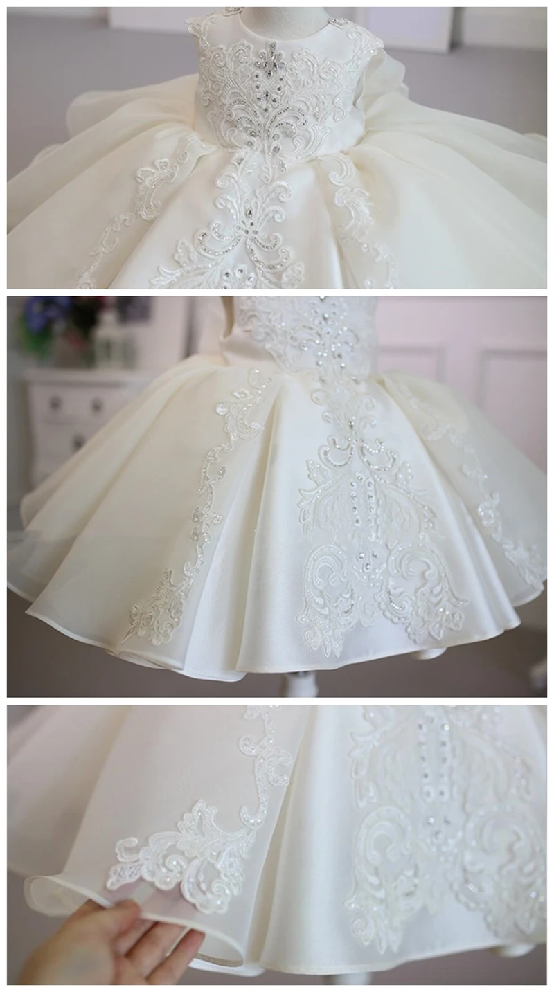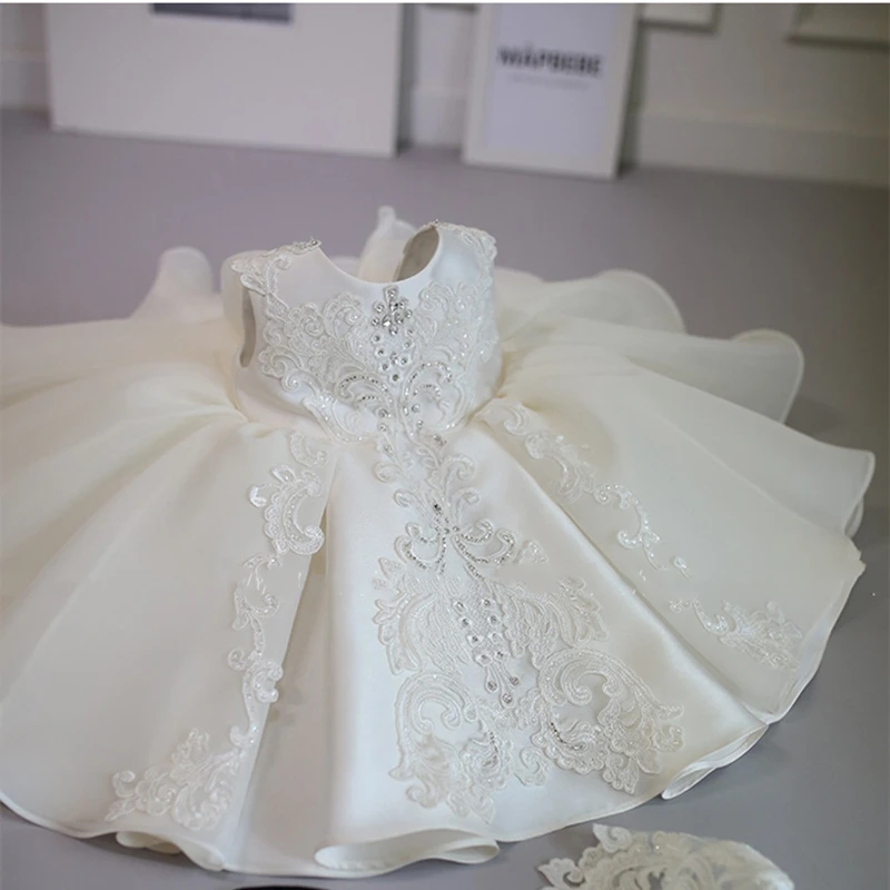 Белое платье для маленьких девочек, детское платье принцессы на 1 год рождения, вечерние в цветочек для маленьких девочек, праздничные и свадебные платья, крестильное платье для младенца