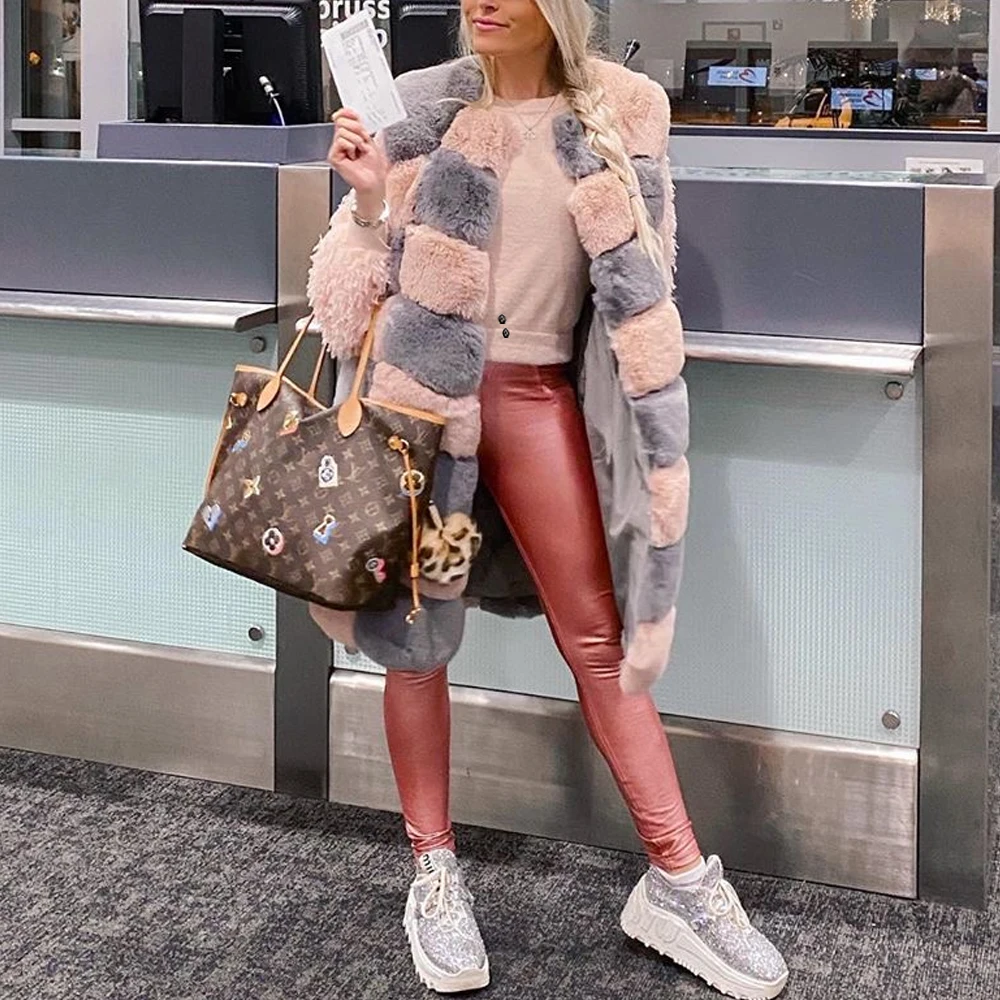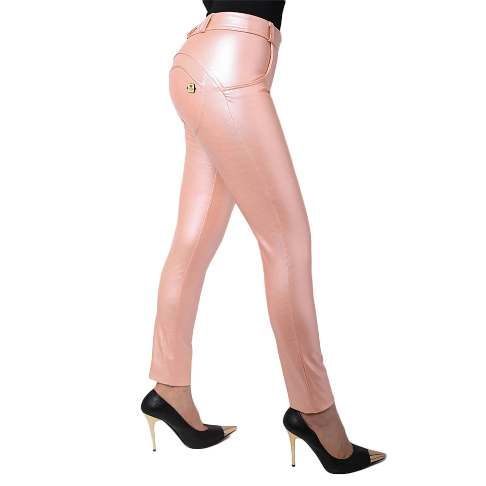 Штаны женские кожаные из мягкой искусственной кожи, с металлическим эффектом
