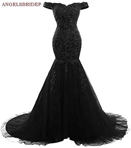 Женское вечернее платье с аппликацией ANGELSBRIDEP, платье для выпускного вечера с открытыми плечами и шлейфом