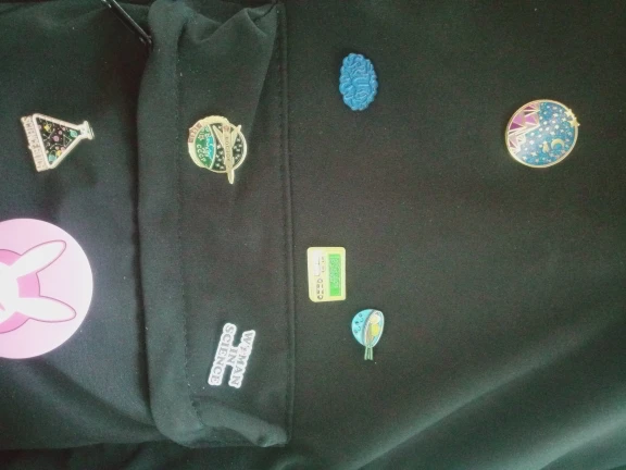 Всё хорошо, сделан прекрасно, увесистый. Сзади пин, а не булавка, что в целом логично