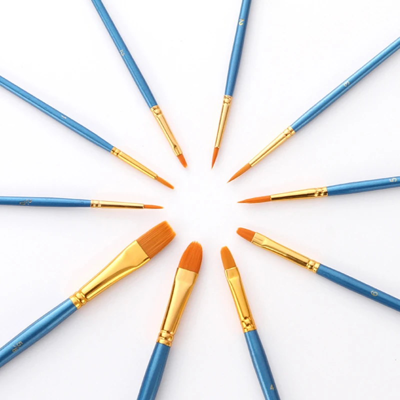 10 шт.партия кисти для рисования, акварельные технические кисти, разные формы, с круглым заостренным кончиком, нейлоновые кисти для рисования волос, принадлежности