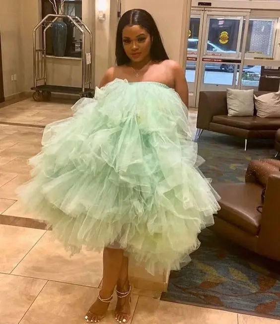 Изготовленное на заказ платье из тюля с оборками в несколько рядов ...