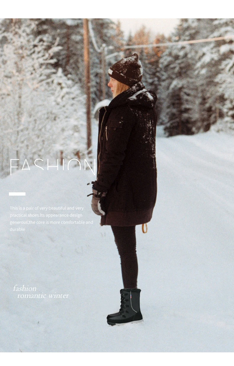 Сапоги женские зимние из водонепроницаемой ткани, с плюшевой подкладкой, черного цвета, 2020