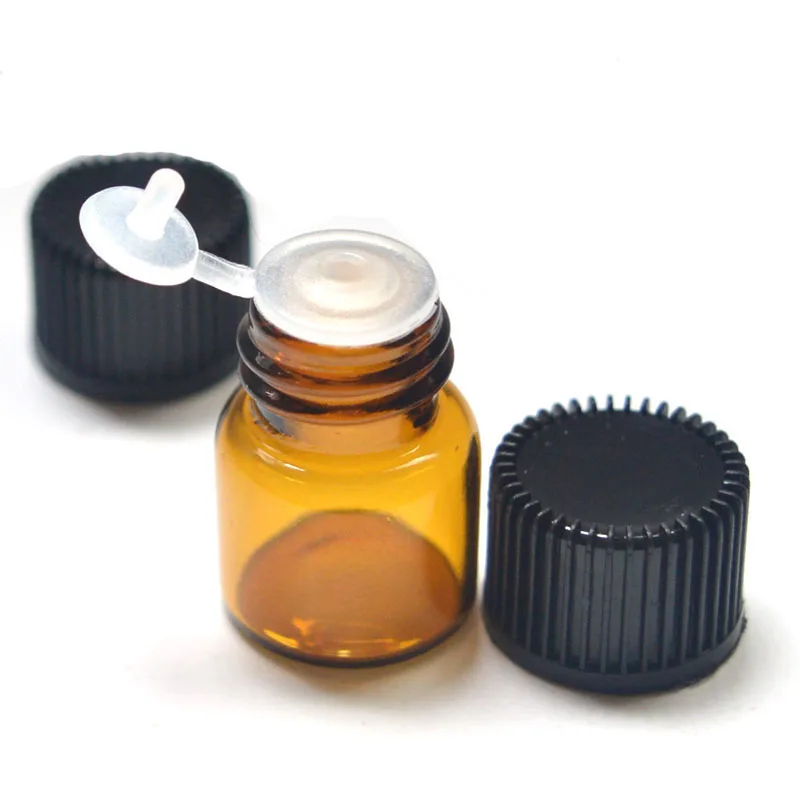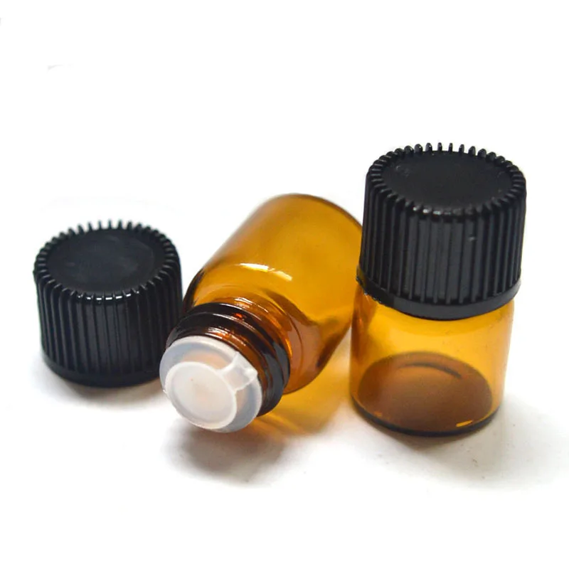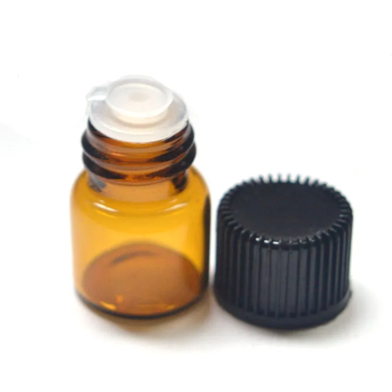 Мини-флакон для эфирного масла, 100 шт., 1 мл, флакон из янтарного стекла, с редуктором отверстия и крышкой, банка для образцов