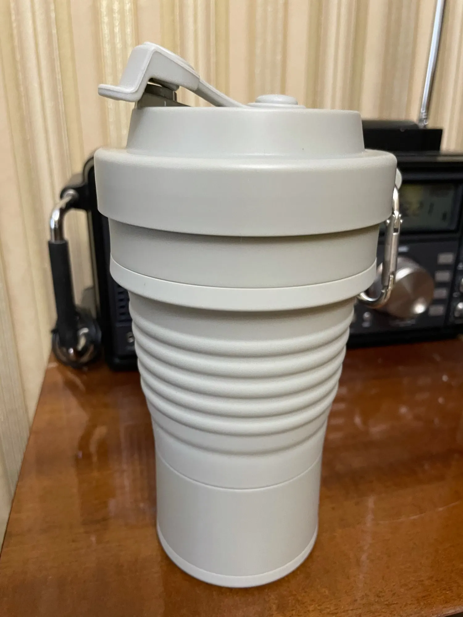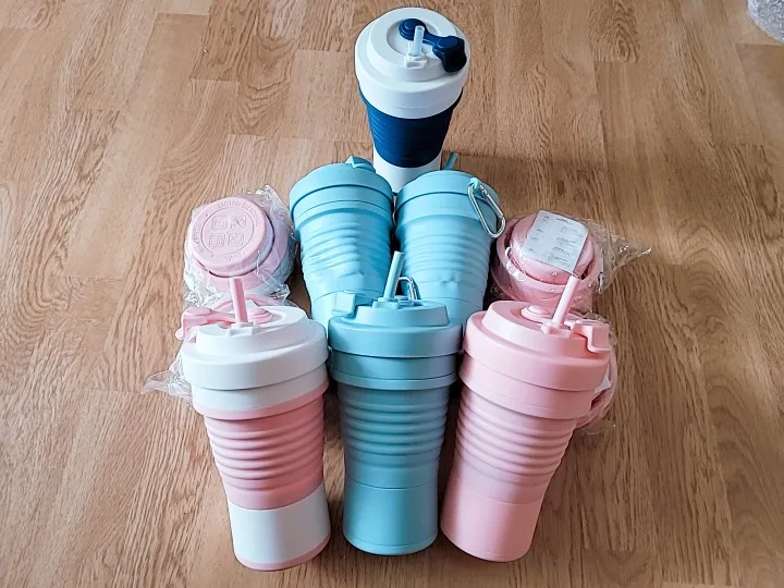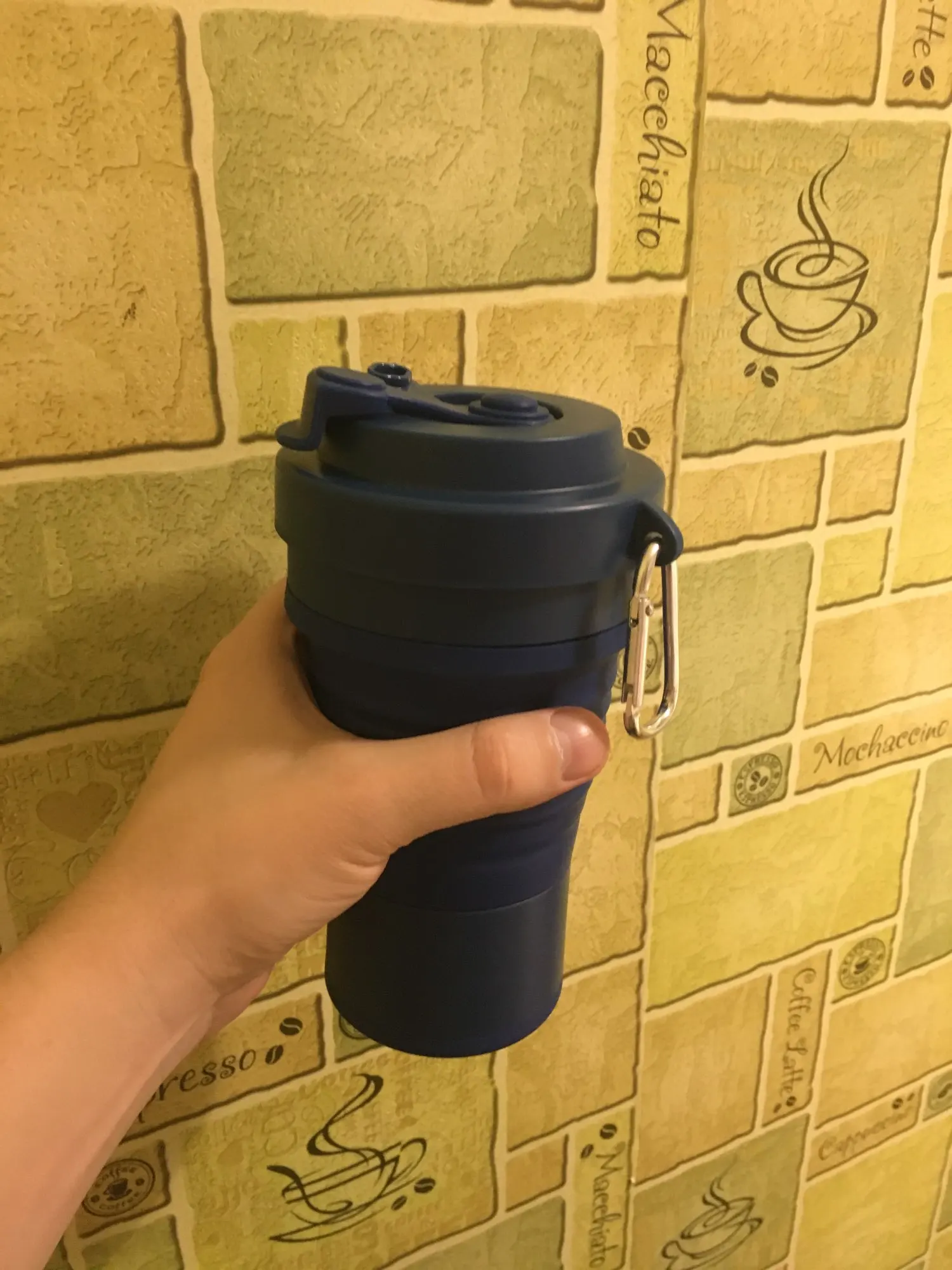 Складная Силиконовая кружка пришла в постамат за 11 дней. На таможне даже объединили 2 посылки от другого продавца - что очень удобно. Размер кружки 10х15см в разложенном виде, 10х7см в сложенном. Объём 550мл. Она достаточно большая в жизни, чем кажется на фото, я бы наверно, взяла бы поменьше. Выдерживает температуры от -40 до +200, так что как только она приехала, сразу же помыла ее в посудомоечной машине. Кружка имеет силиконовую трубочку, которую можно свернуть и спрятать во внутрь и металлический карабин. Отверстие герметично и не проливается. Очень качественный продукт за свою цену. Рекомендую