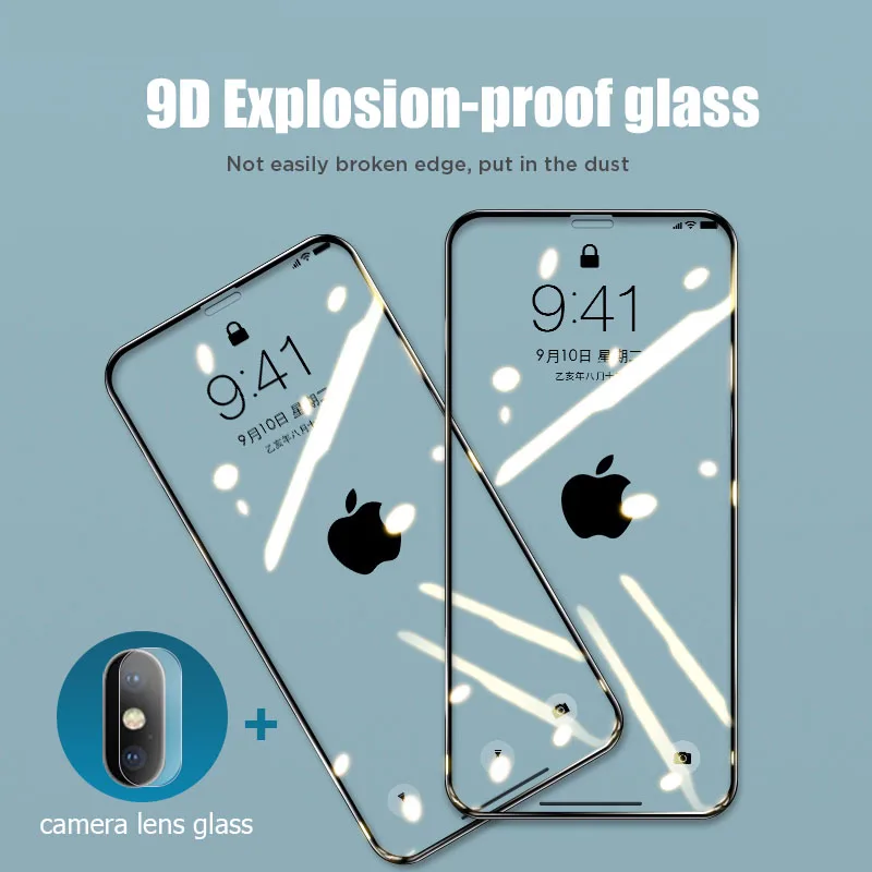 9D Защитная пленка для экрана из закаленного стекла для iPhone 6, 6S, 7, 8 plus X XS XR Xs Max 11 Pro Max для заднего объектива камеры пленка для iPhone SE 2020 «2 в 1»