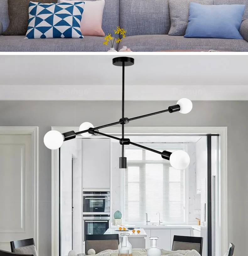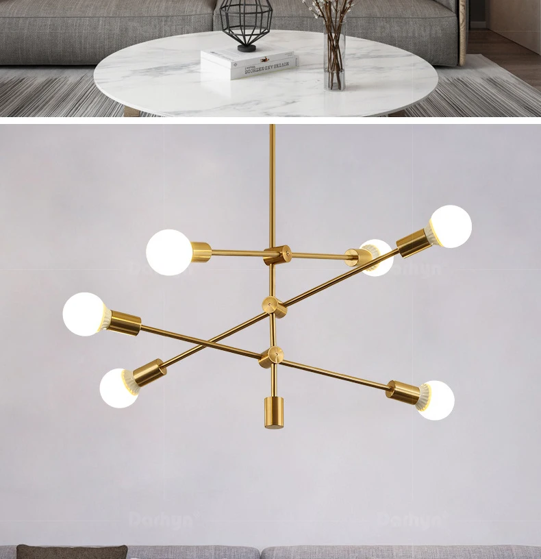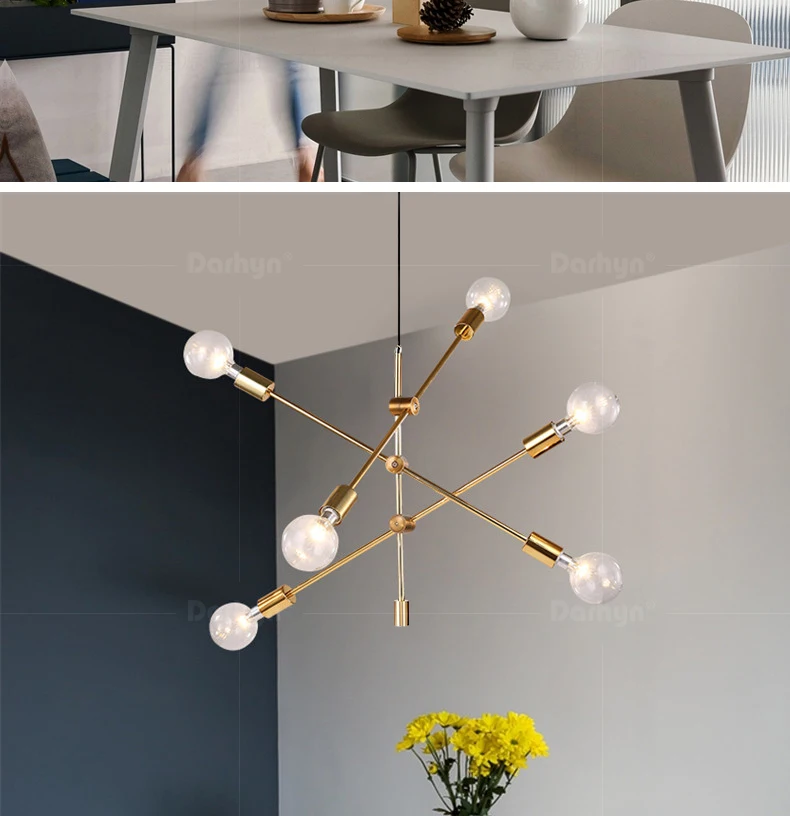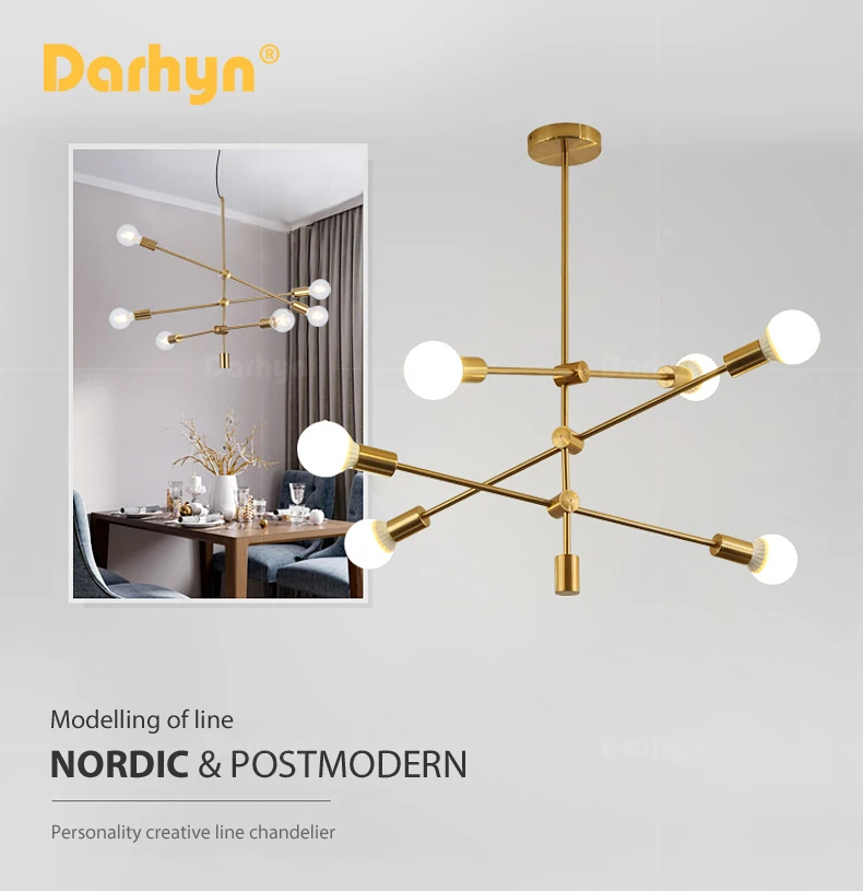 DARHYN люстра, модель освещения, 6 головок, скандинавские кованые железные люстры, покрытые бронзовой геометрической линией, люстра для спальни