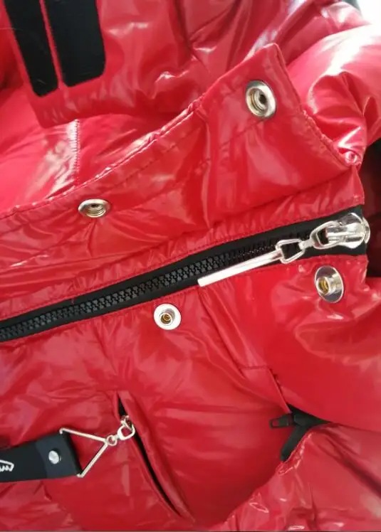 Молния очень гладкая, ткань блестящая, водонепроницаемая и теплая.