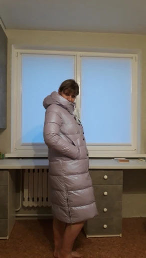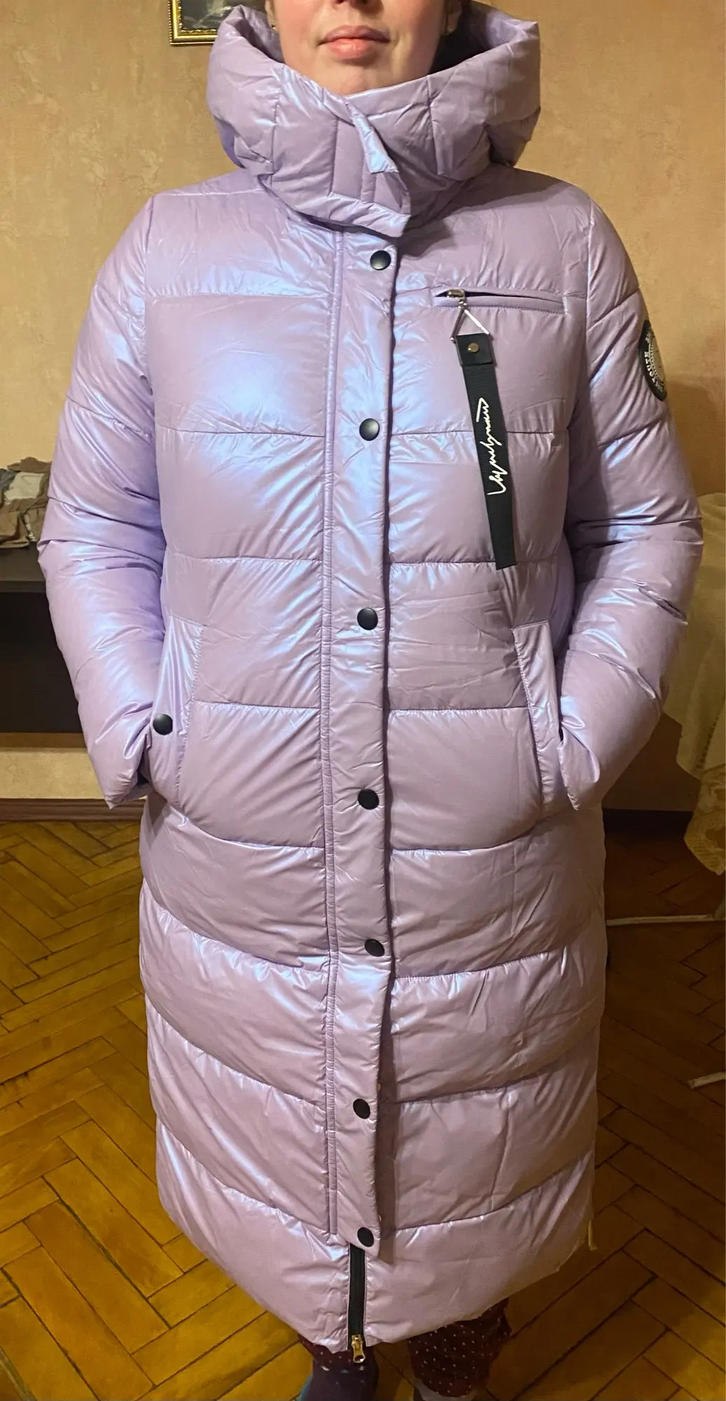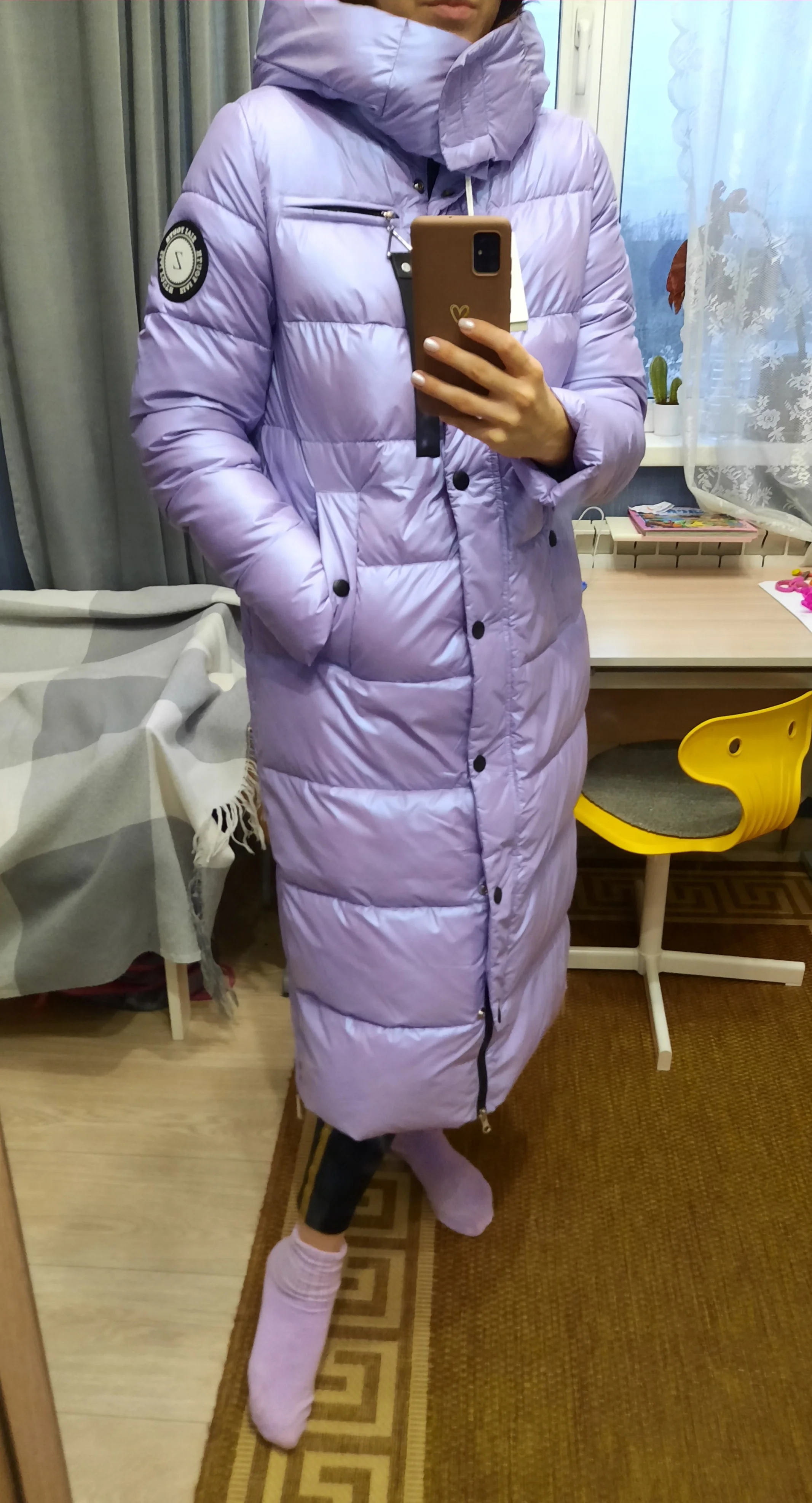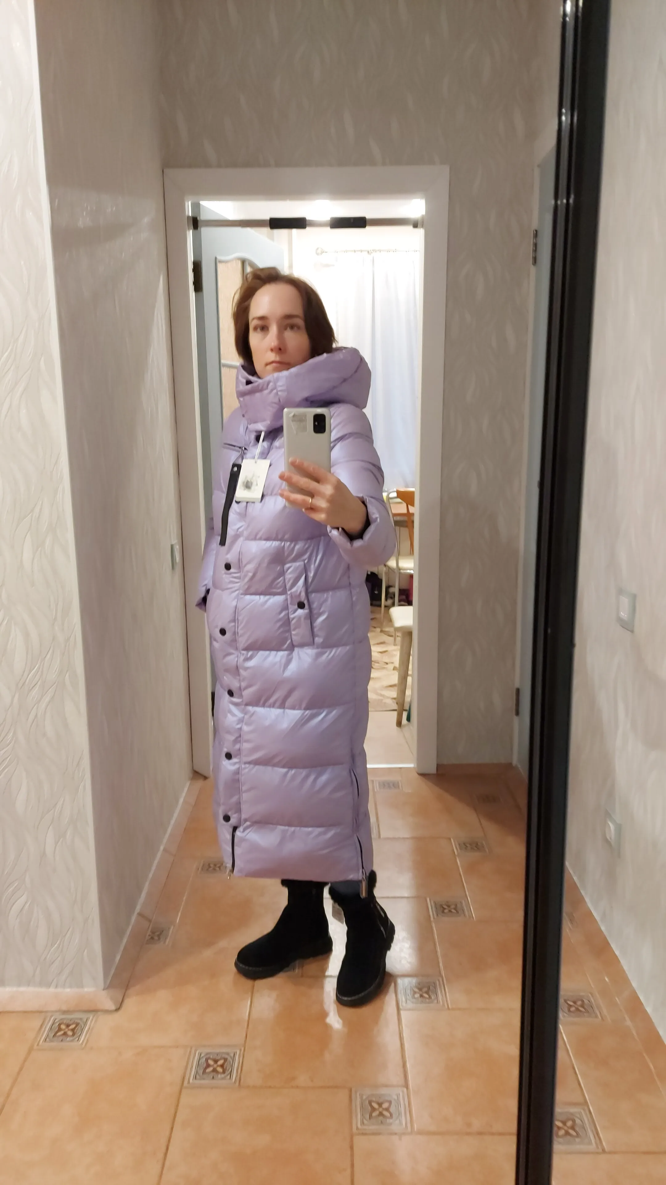 Пуховик очень красивый. Светло-сиреневый цвет с переливом. Набит плотно. Заказом очень довольна. У нас такой красоты не встречала. Швы ровные. Все очень аккуратно. Это фабричный Китай. Подстраховалась взяла XXXL. Внизу свободно, а в плечах в самый раз. Заказала 11.11.2020г. , а получила 07.12.2020г. Продавец общительная, на все вопросы отвечает очень быстро.