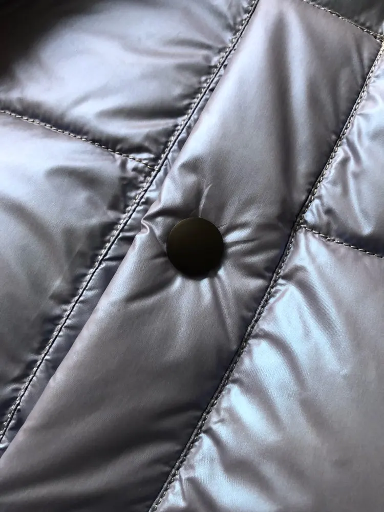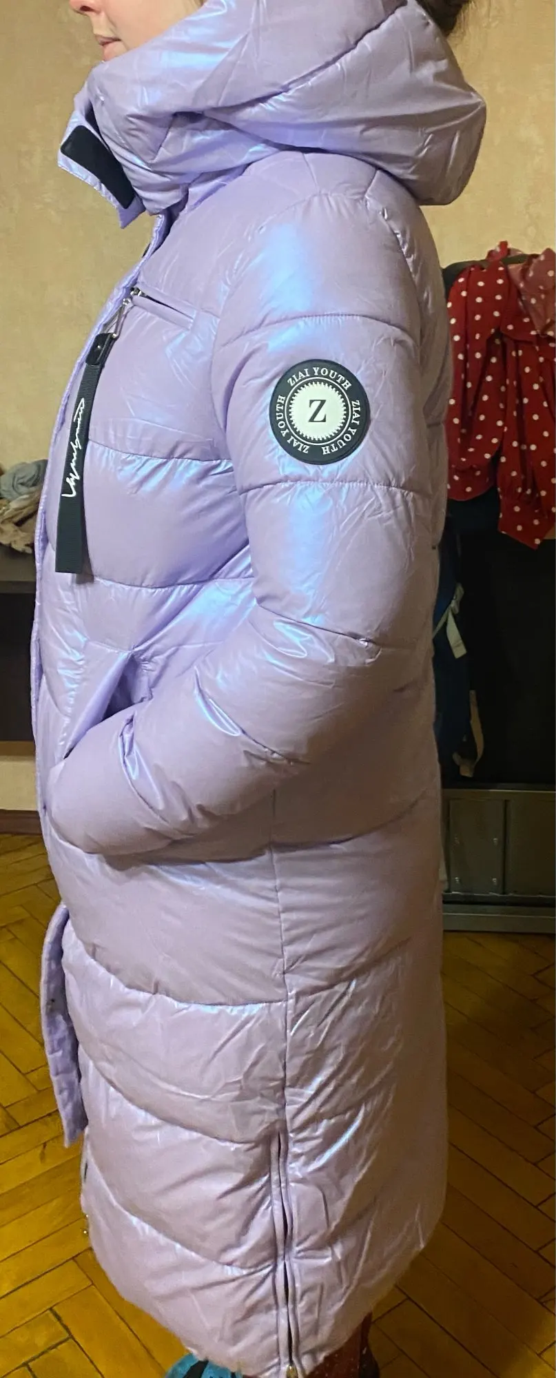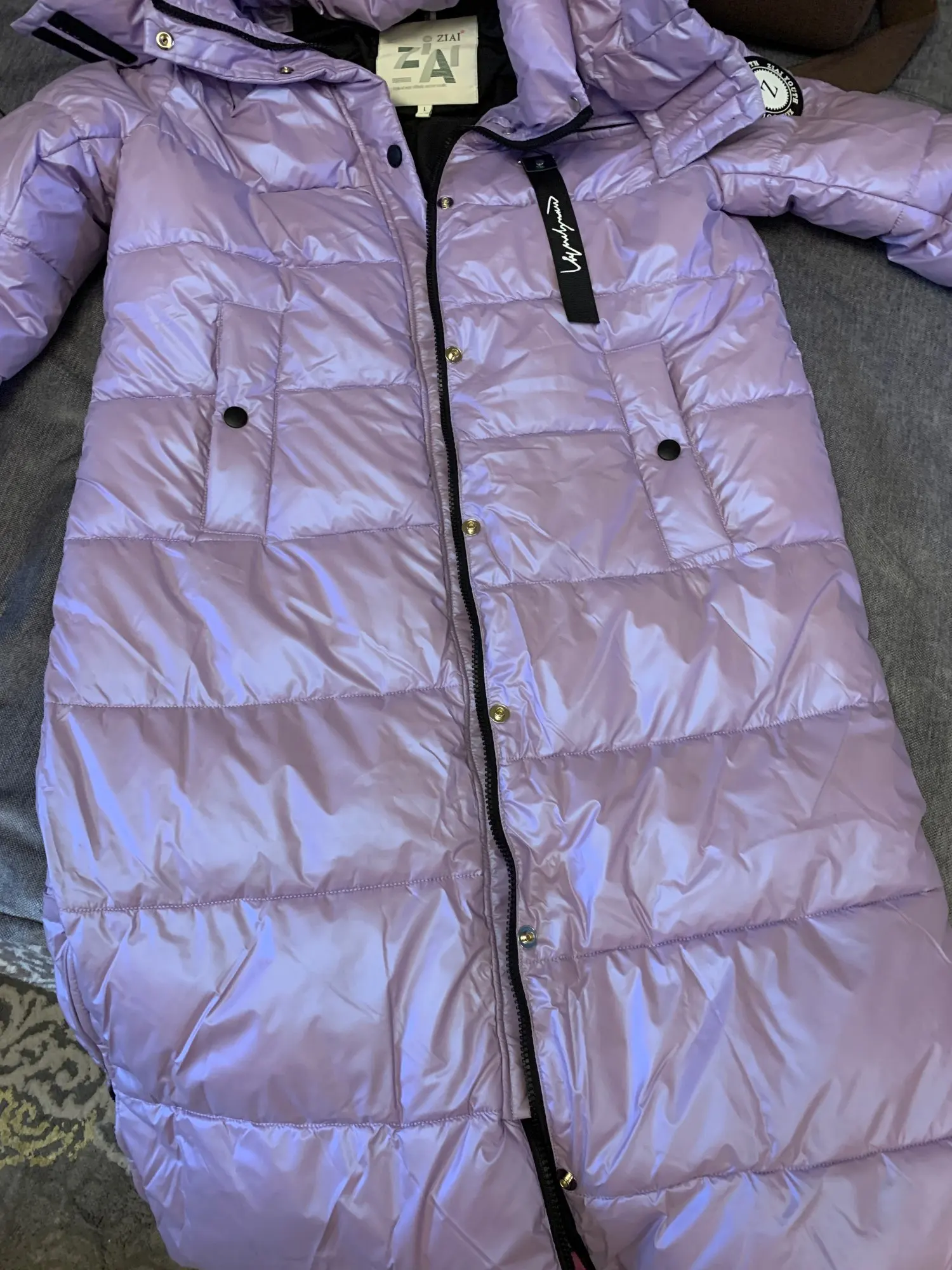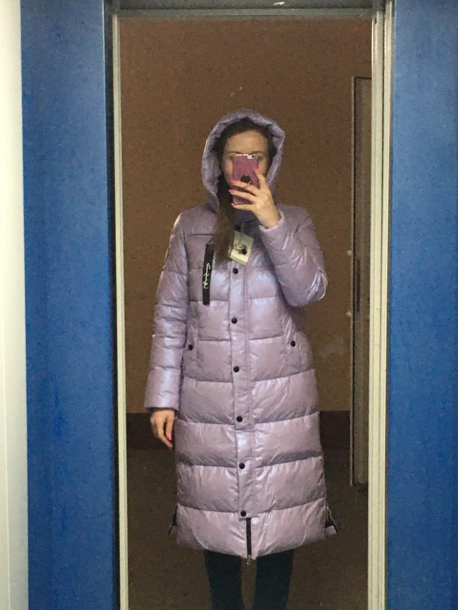 Пуховик очень красивый. Светло-сиреневый цвет с переливом. Набит плотно. Заказом очень довольна. У нас такой красоты не встречала. Швы ровные. Все очень аккуратно. Это фабричный Китай. Подстраховалась взяла XXXL. Внизу свободно, а в плечах в самый раз. Заказала 11.11.2020г. , а получила 07.12.2020г. Продавец общительная, на все вопросы отвечает очень быстро.