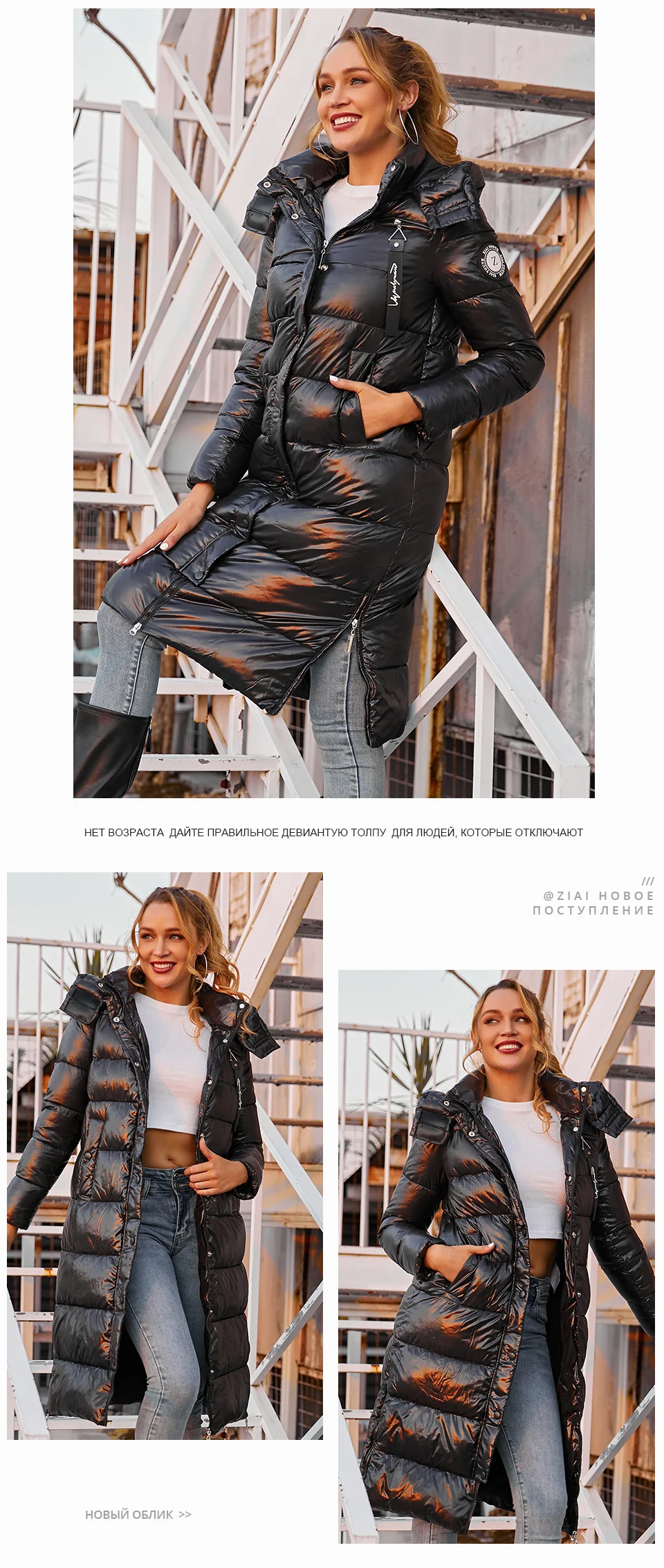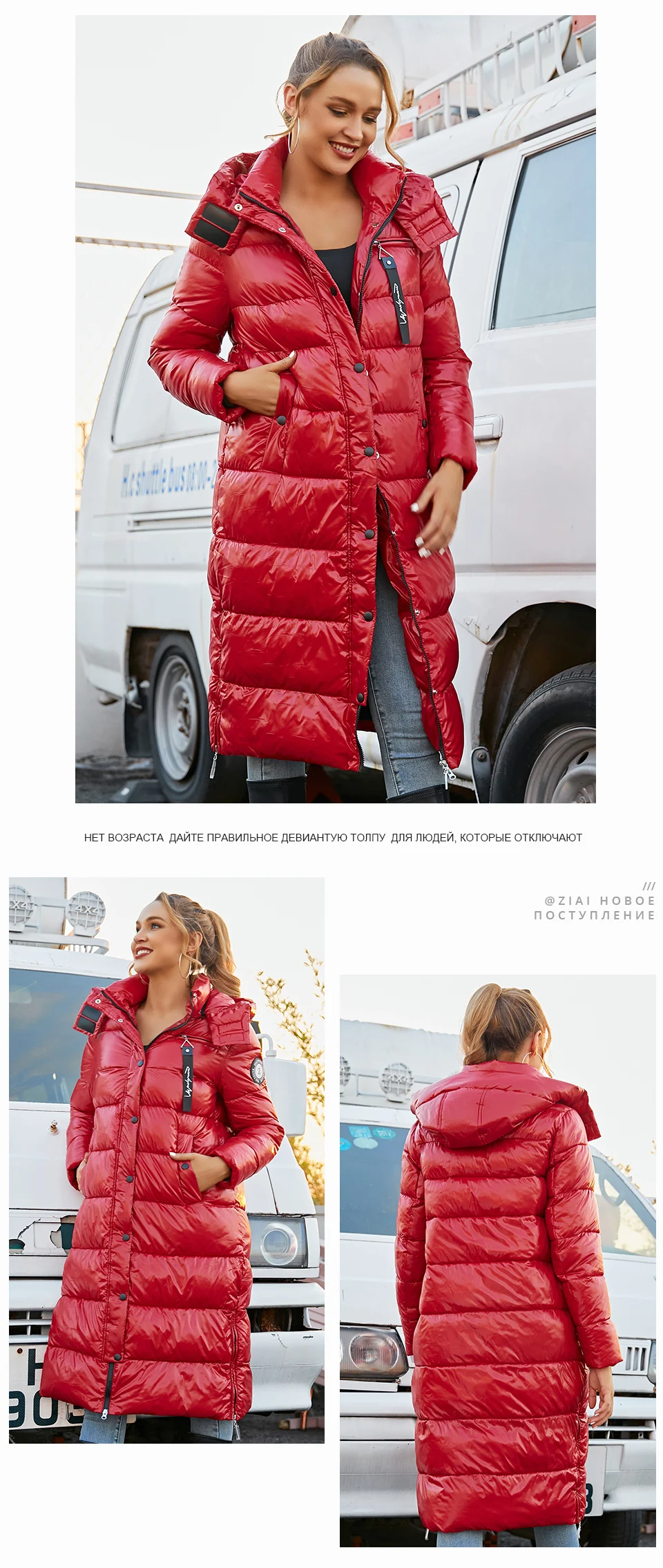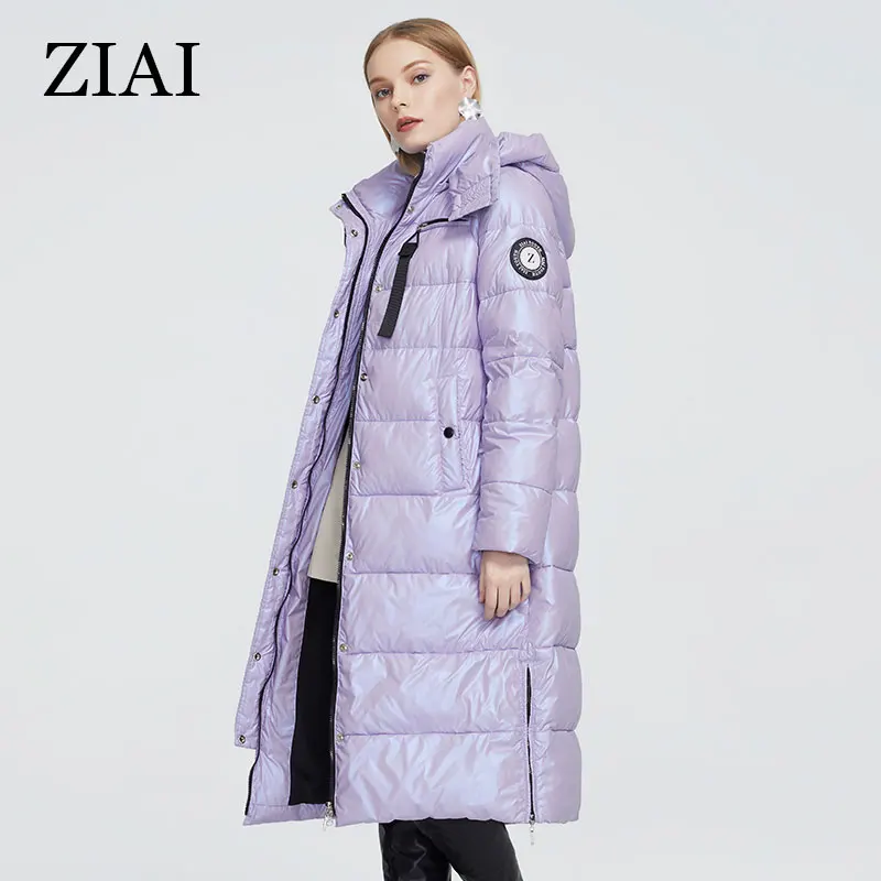 Зима 2021, Женская парка ZIAI, длинная теплая Женская куртка, модное тонкое женское пальто из цветной ткани, отличное Брендовое качество, популярная модель