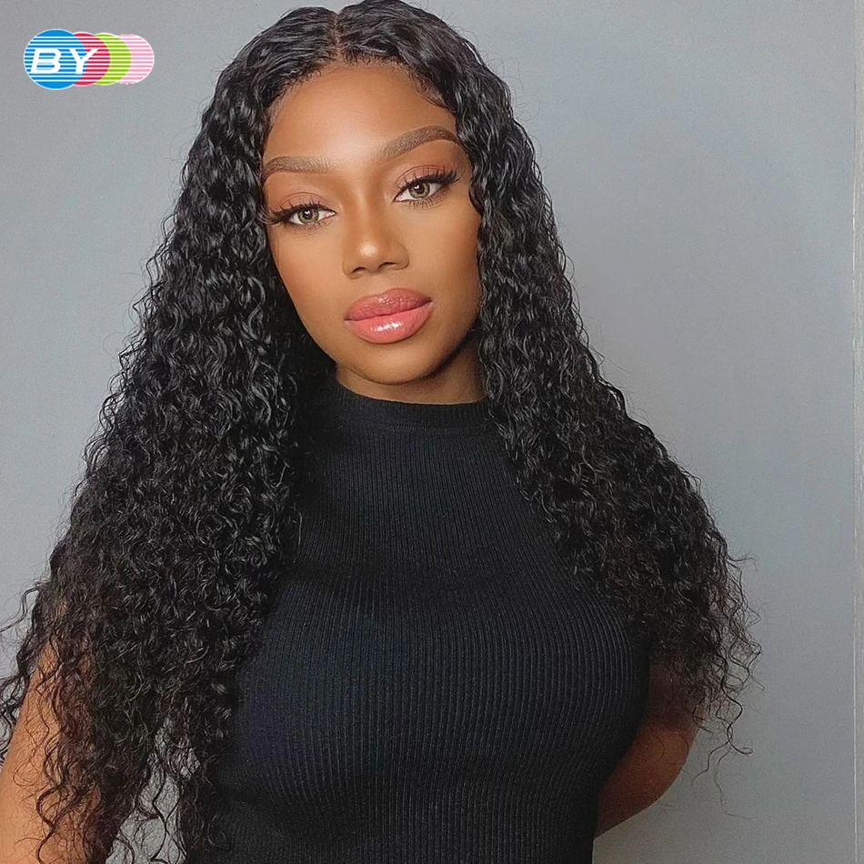 Парик из натуральных волос на сетке спереди, Курчавые Кудрявые монгольские передние парики на сетке, бесклеевые парики на сетке, предварительно выщипанные длинные глубокие кудрявые прозрачные сетки