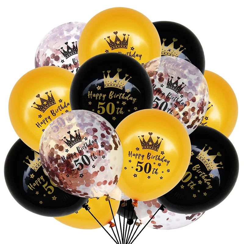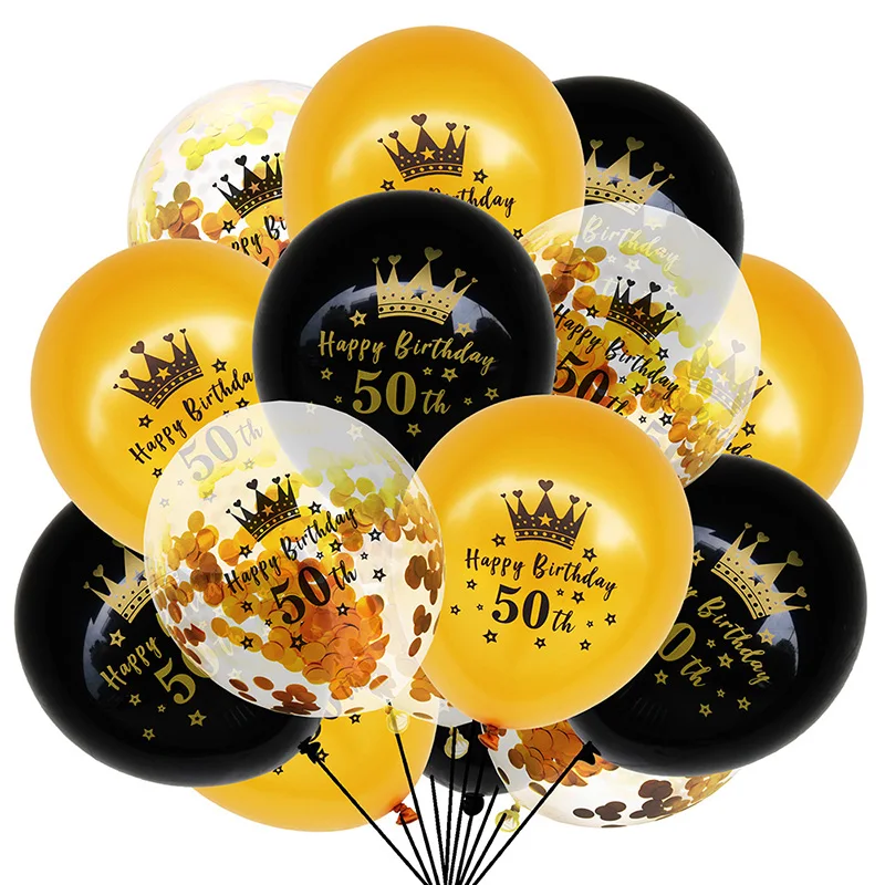 Воздушные шары для дня рождения, 15 шт.компл., золотистые, черные, конфетти-короны, воздушные шары 16, 18, 21, 30, 40, 50, 60 лет, украшение для дня рождения