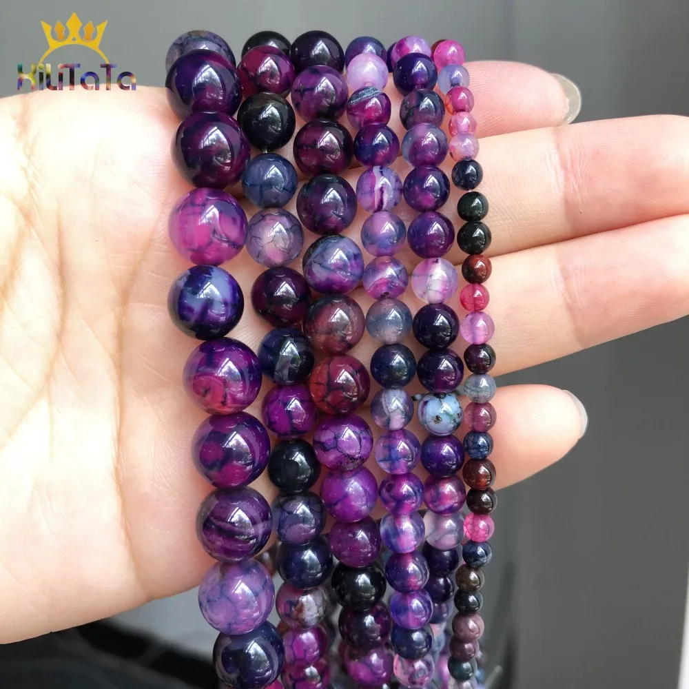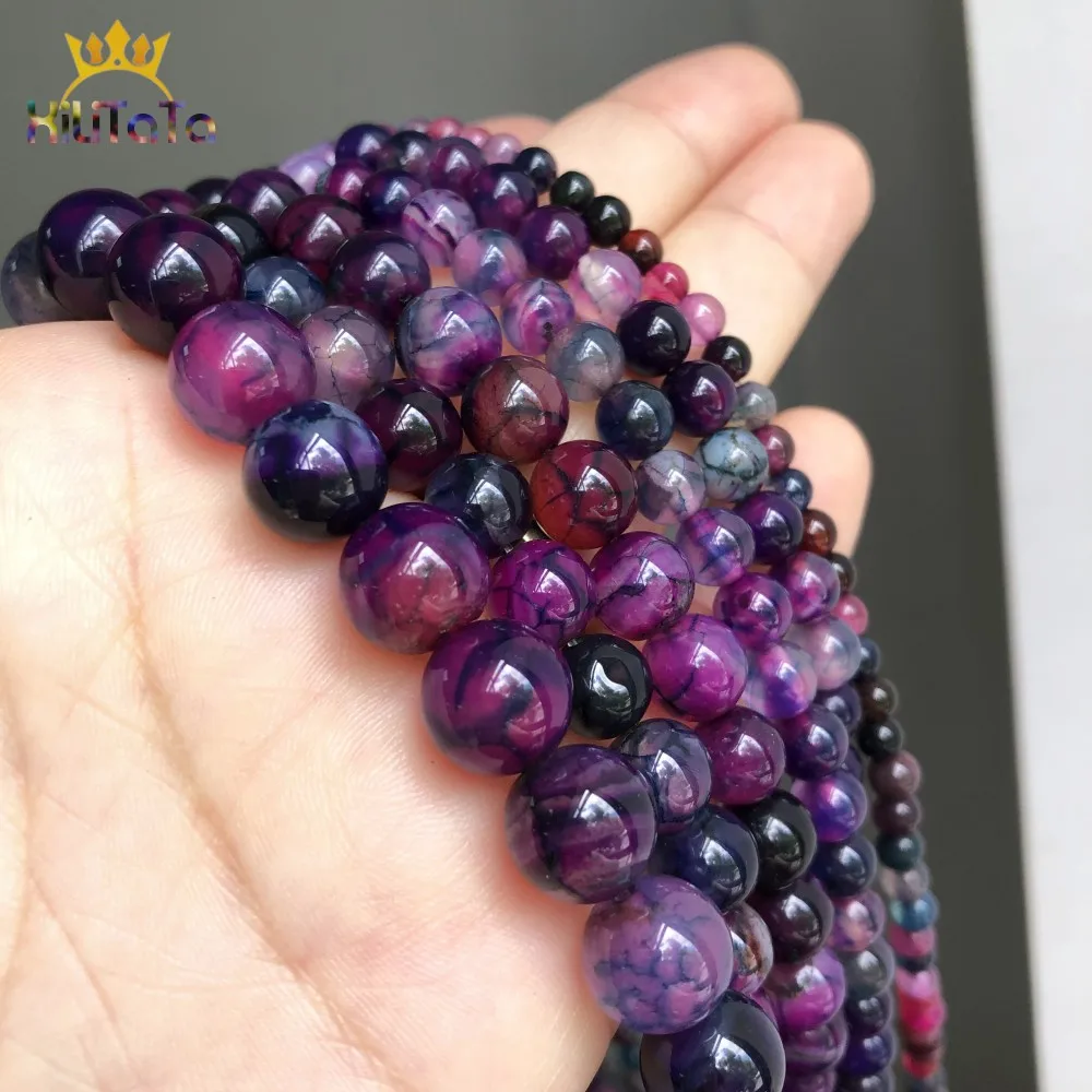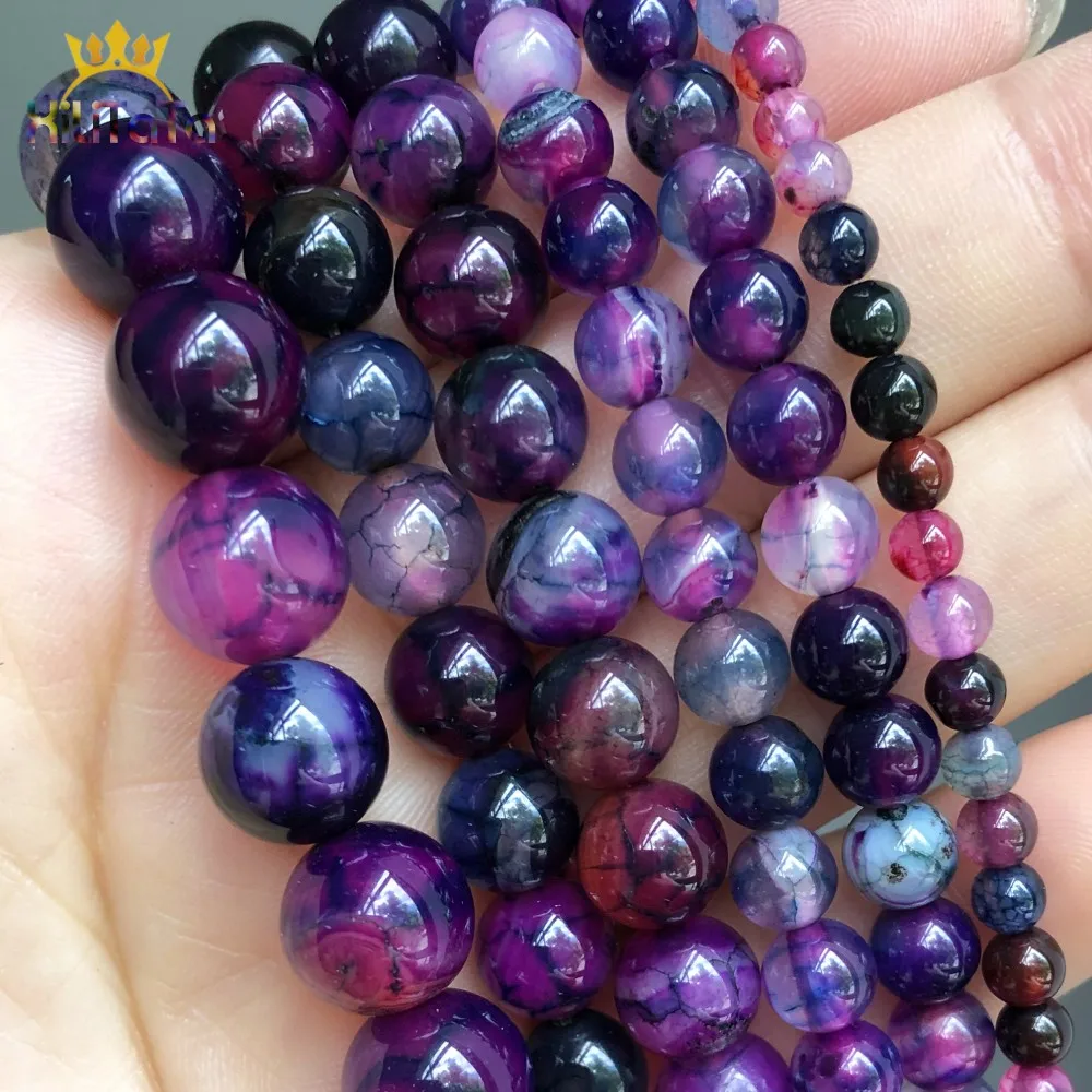 Натуральный камень, Фиолетовый Огненный Дракон черный с прожилками, Агаты бусины для самостоятельного изготовления ювелирных изделий шармы браслет аксессуары 6 8 10 мм 15''