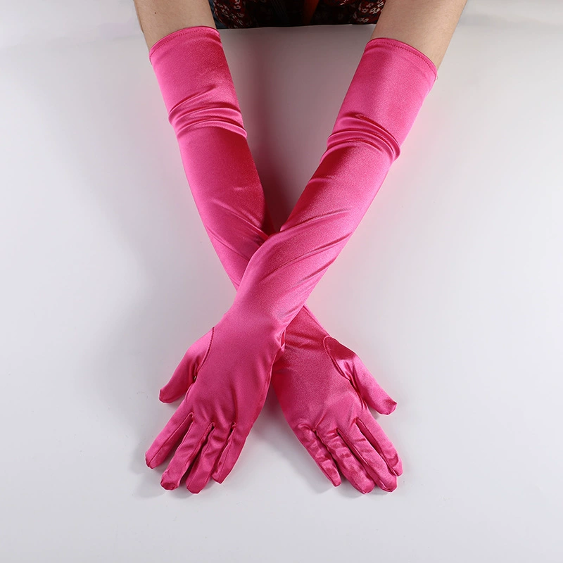Элегантные фиолетовые, красные, черные, белые перчатки для свадебной вечеринки, выпускного вечера, модные эластичные атласные перчатки одного размера для оперы, женские фиолетовые перчатки